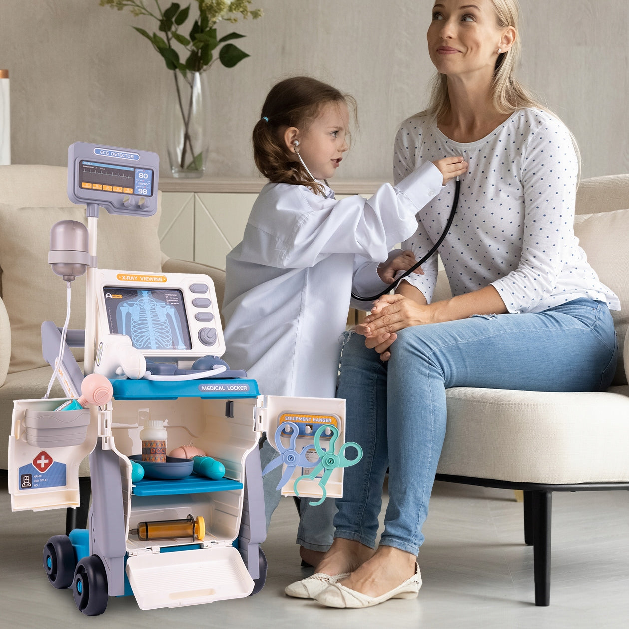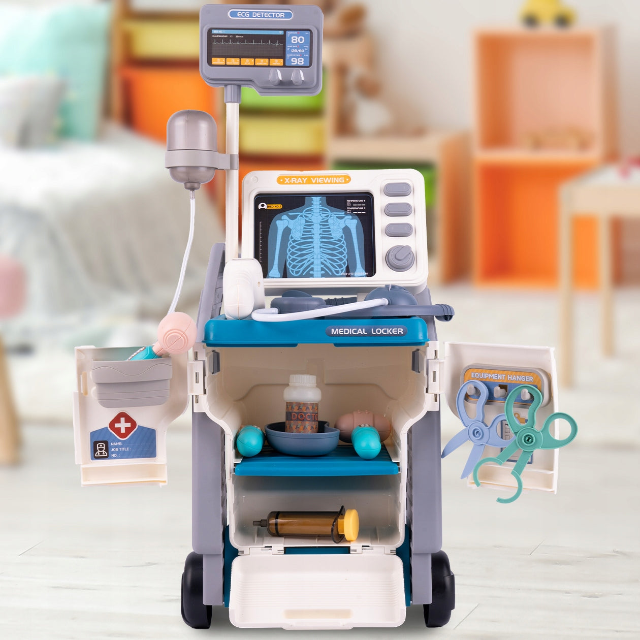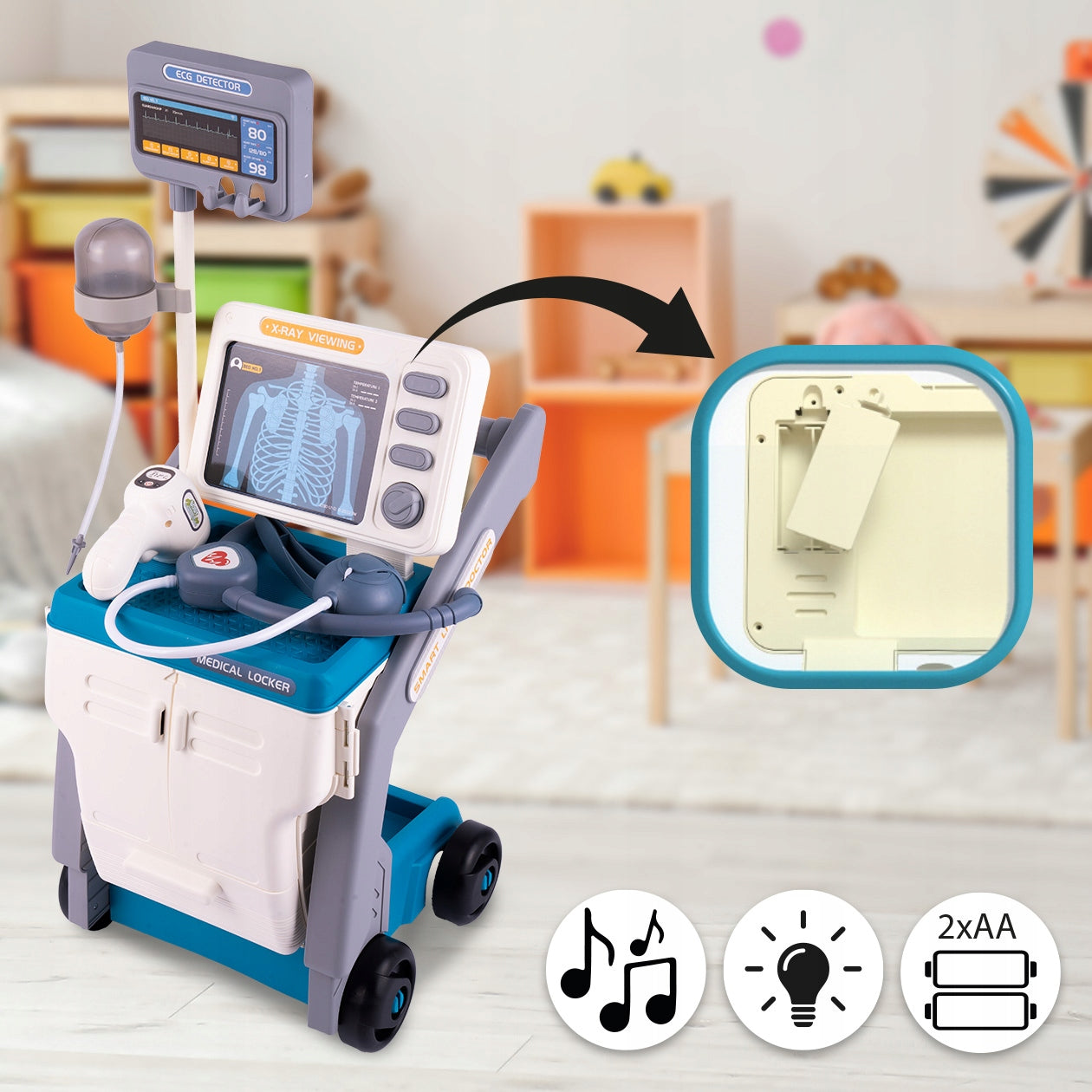 Didelis medicininis rinkinys su EKG monitoriumi ir vežimėliu – Mažojo daktaro žaidimų komplektas vaikams