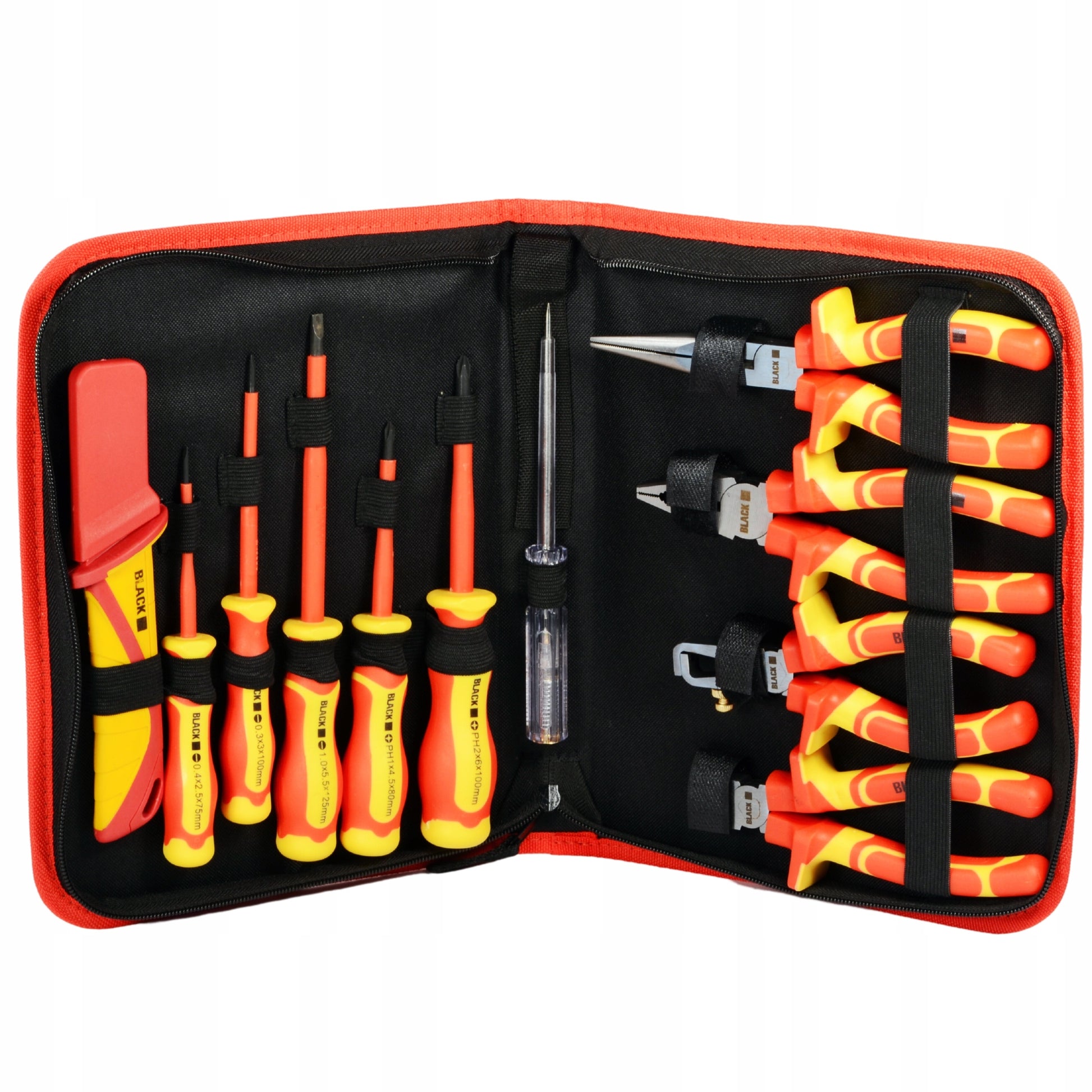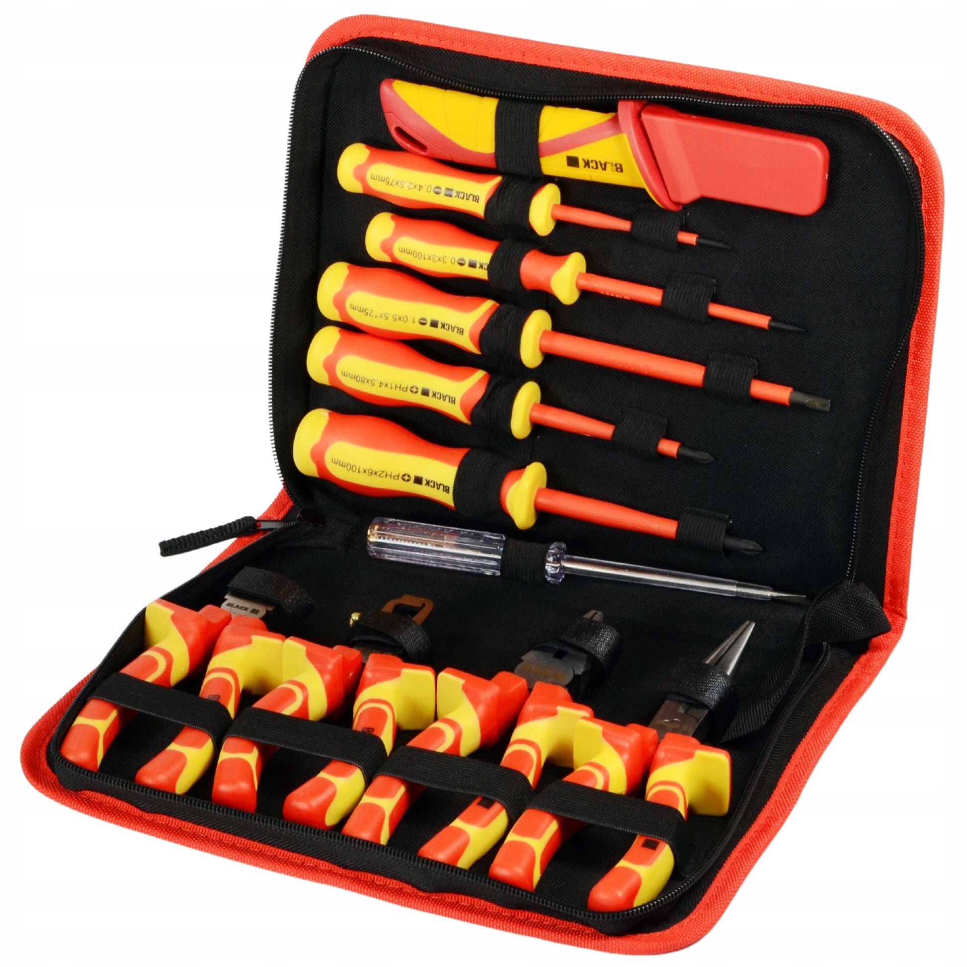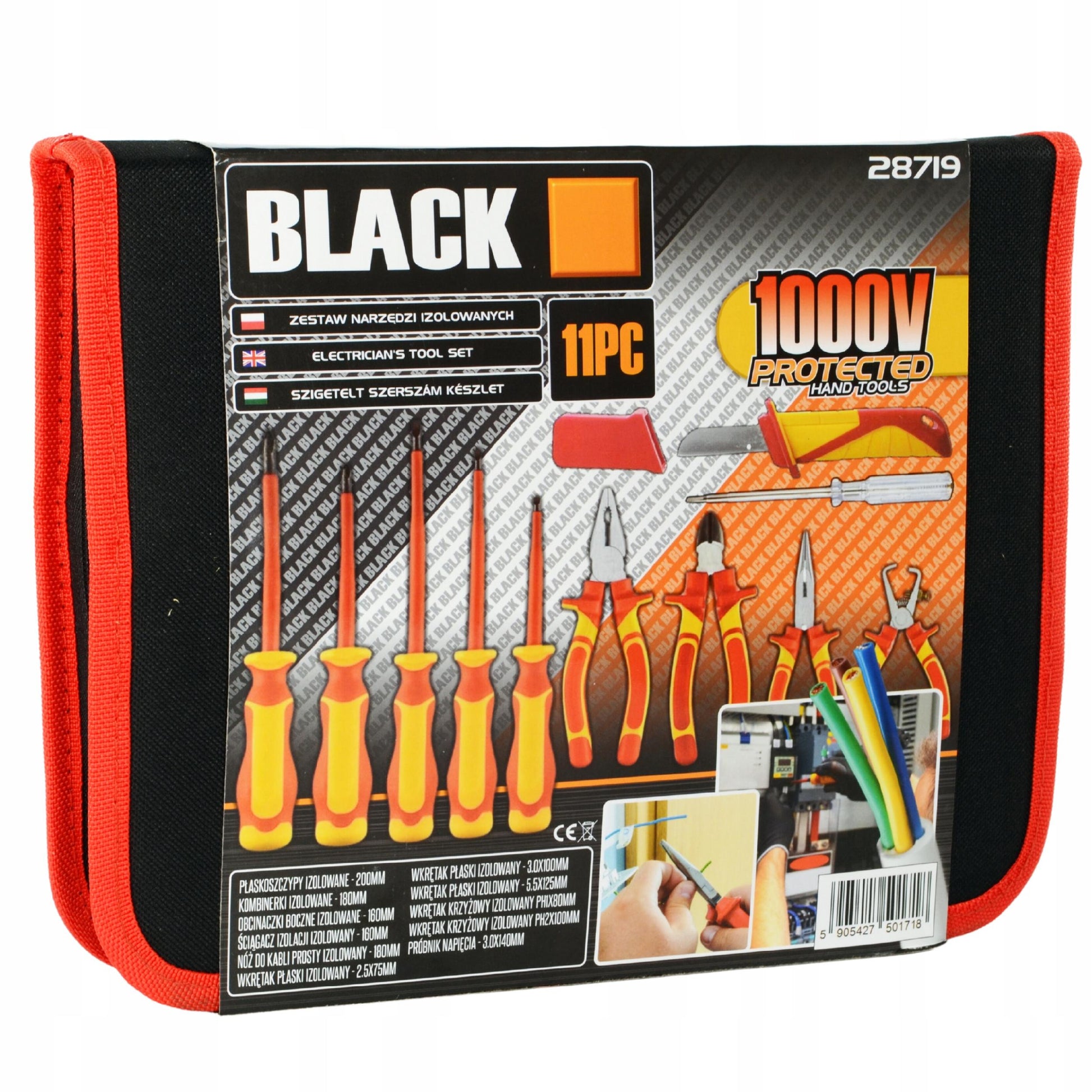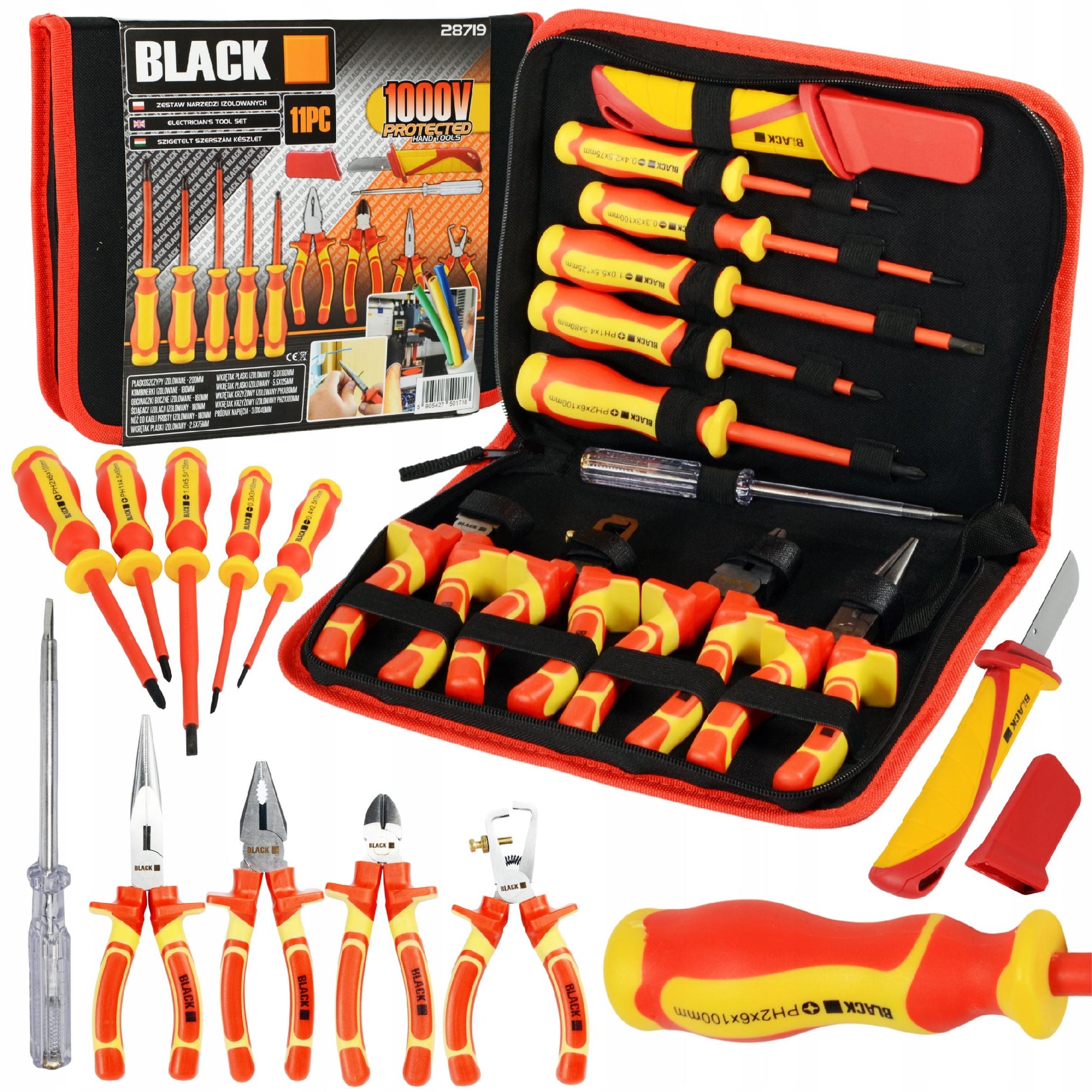 Didelis įrankių ir atsuktuvų rinkinys elektrikui, 1000V izoliuoti, 11 vnt. BLACK