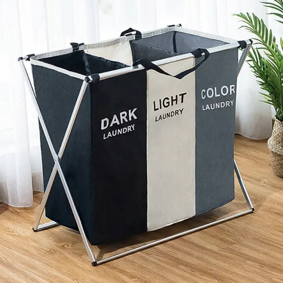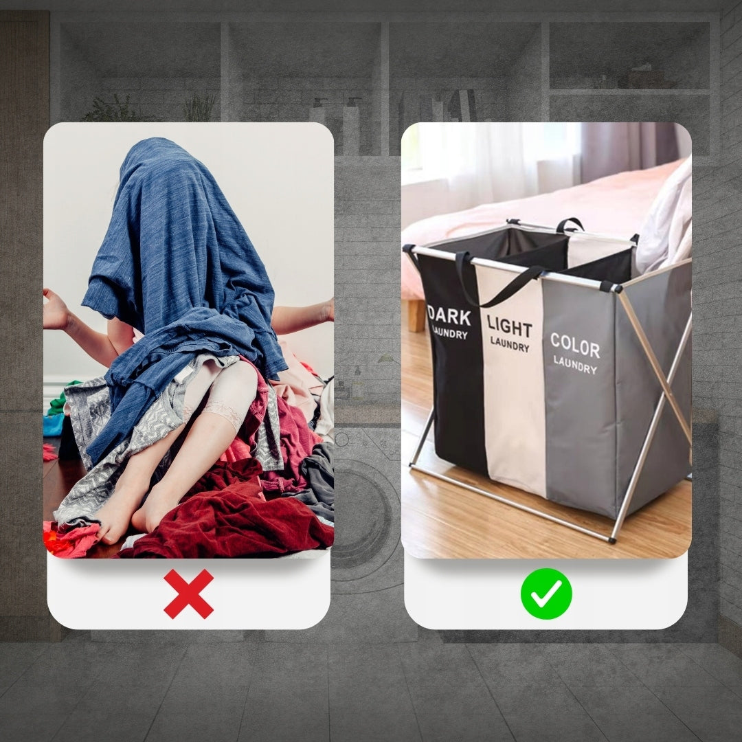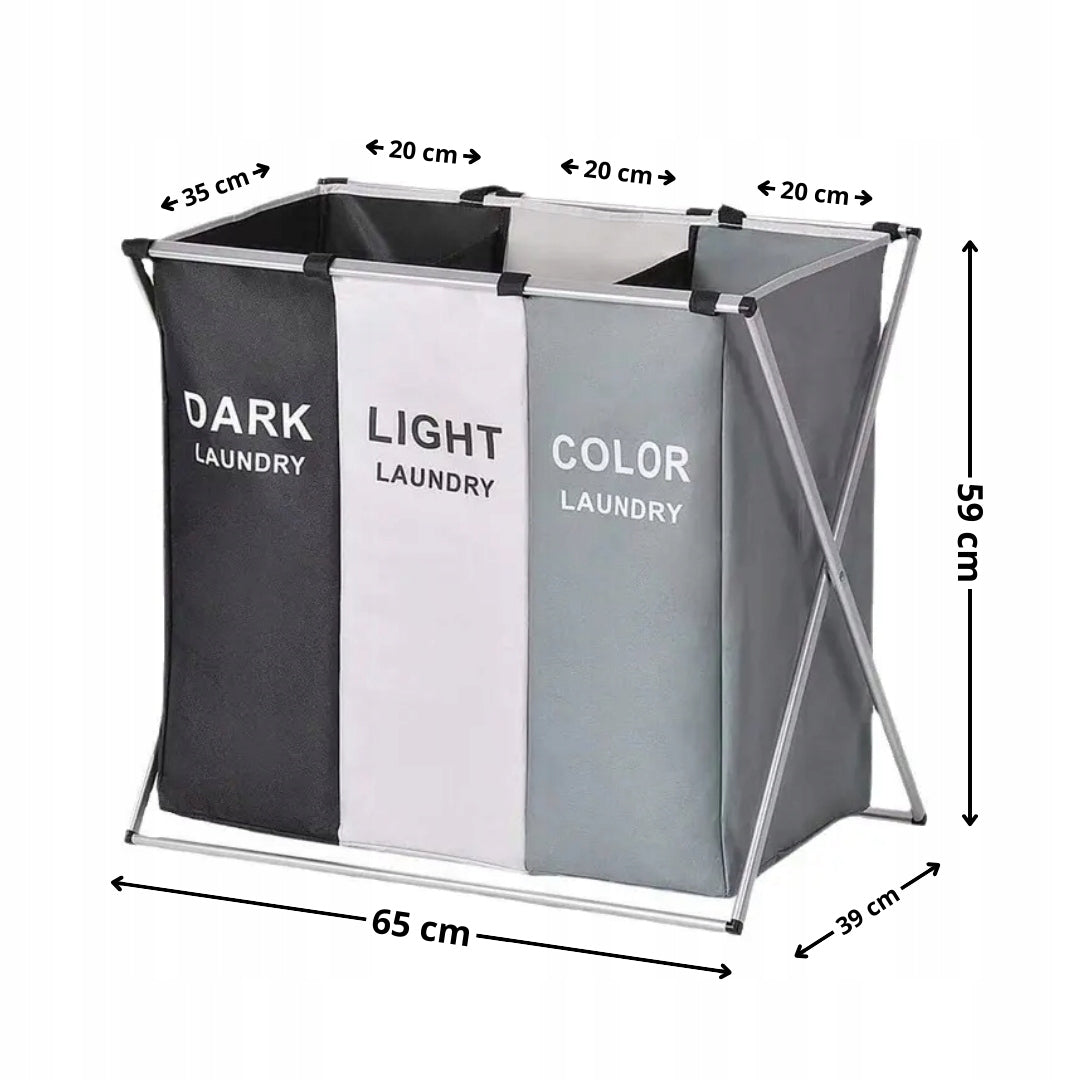 Atsisveikinkite su netvarka ir pasitikite organizuotumo erą su mūsų naujovišku, dideliu, pastatomu skalbinių krepšiu-organizeriu. Sukurtas atsižvelgiant į jūsų patogumą ir namų estetiką, šis XXL dydžio sprendimas ne tik efektyviai tvarko skalbinius, bet ir tampa stilingu jūsų namų interjero akcentu. Jo unikalus dizainas su trimis atskiromis kameromis leidžia akimirksniu rūšiuoti drabužius pagal spalvas, audinio tipą ar net šeimos narius, palengvinant kasdienius skalbimo darbus ir taupant jūsų brangų laiką. Pamirškite nuobodų drabužių rūšiavimą prieš pat skalbimo mašinos paleidimą – dabar viskas bus tvarkingai atrinkta vienoje vietoje.