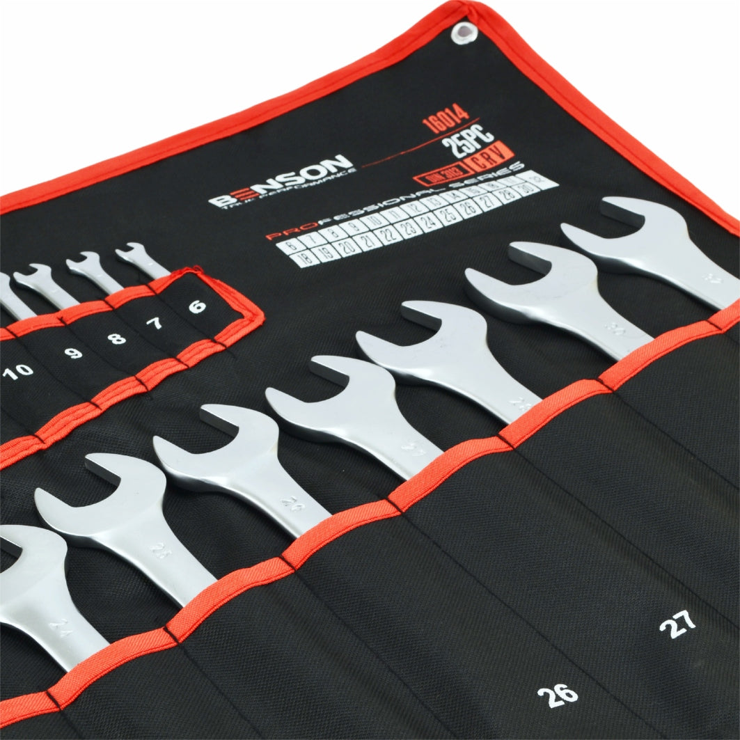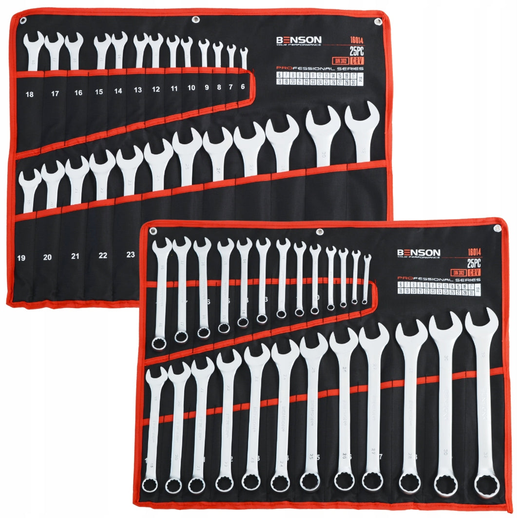 Didelis raktų komplektas plokščiu ir žiediniu 6-32mm 25 vnt. su kilimėliu BENSON BLACK