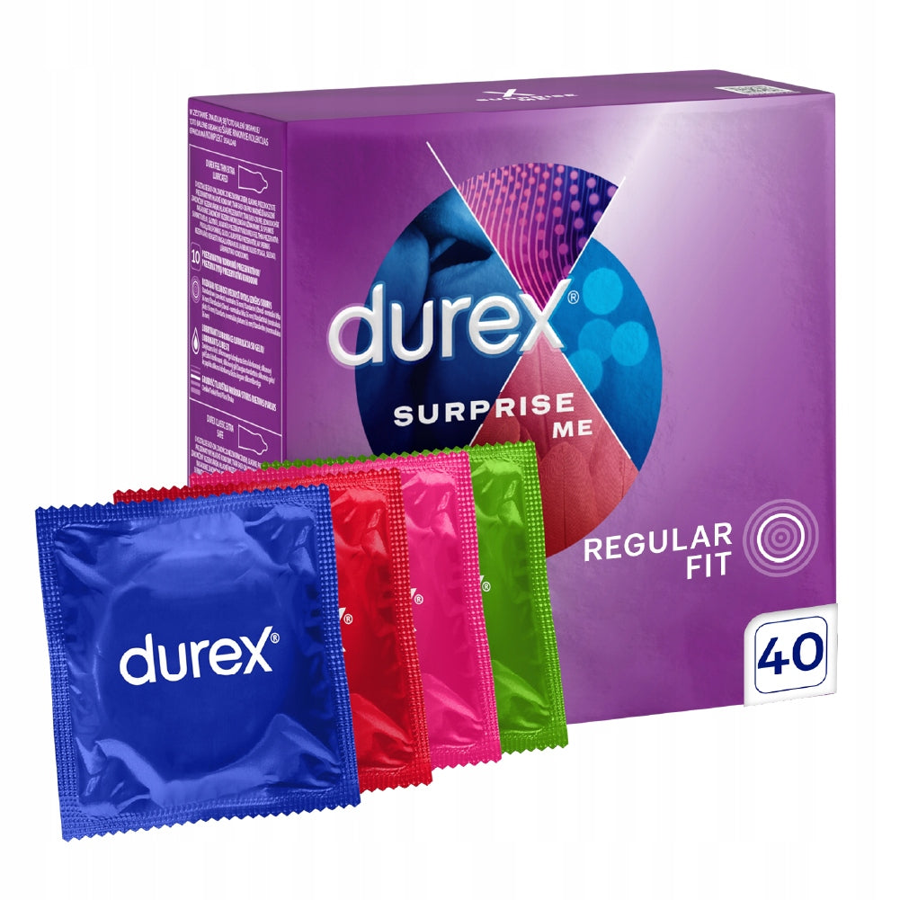 - 40 vnt. Durex Surprise Me prezervatyvų (mix skirtingų rūšių).