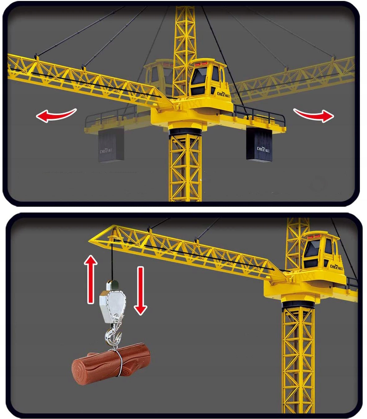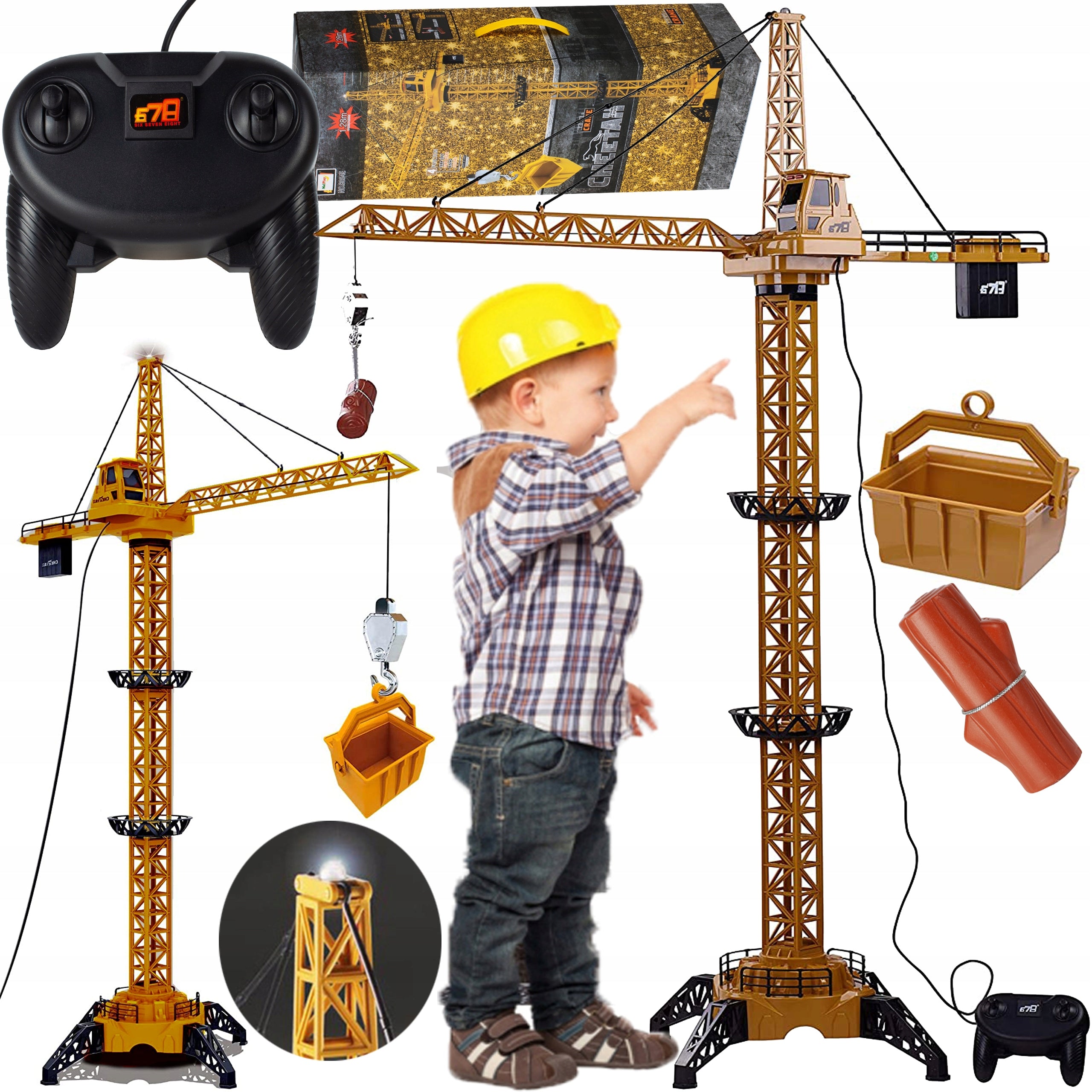 - Didelis XXL nuotoliniu būdu valdomas kranas (aukštis iki 128 cm)