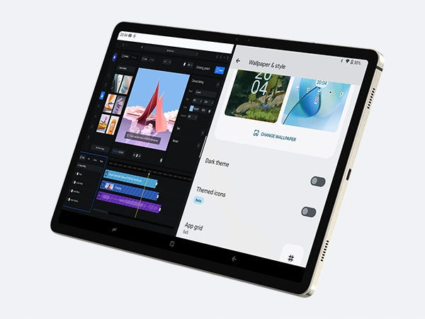 Planšetės ekranas, įkomponuotas ploniame metaliniame rėmelyje, užima net 87,5% priekinio paviršiaus. 2,5K (2560x1600) raiška garantuoja stulbinantį vaizdą tiek žaidžiant, tiek žiūrint filmus ar dirbant. Padidintas iki 12,4 colių ekranas suteikia dar daugiau erdvės darbui ir pramogoms. TUV SUD sertifikatas užtikrina akių apsaugą nuo mėlynosios šviesos, todėl net ilgai naudojant akys nepavargs. Trys akių apsaugos režimai padeda reguliuoti mėlynosios šviesos kiekį, ekrano ryškumą ir spalvų temperatūrą, suteikdami komfortišką žiūrėjimo patirtį.