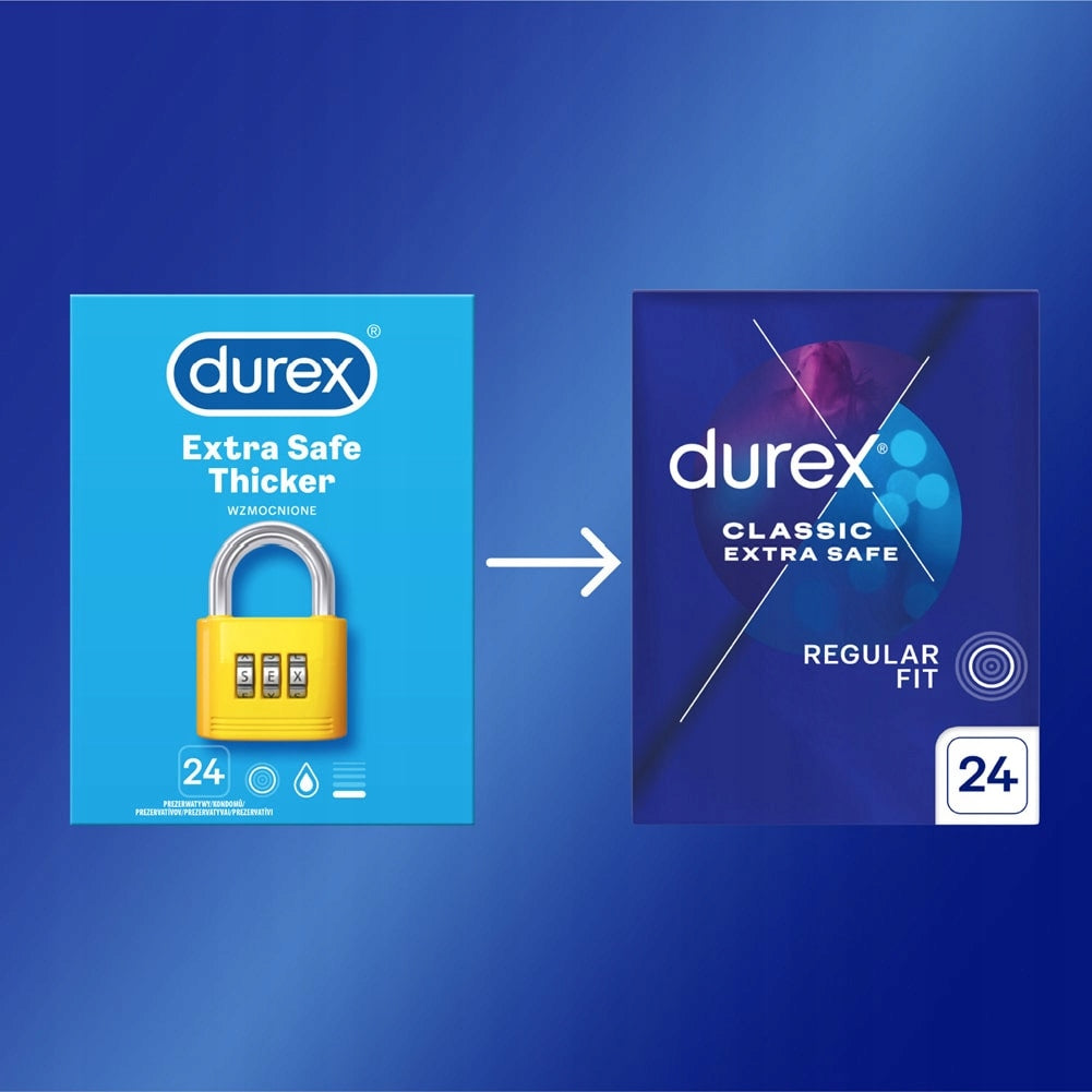 - 24 vienetai Durex EXTRA SAFE prezervatyvų