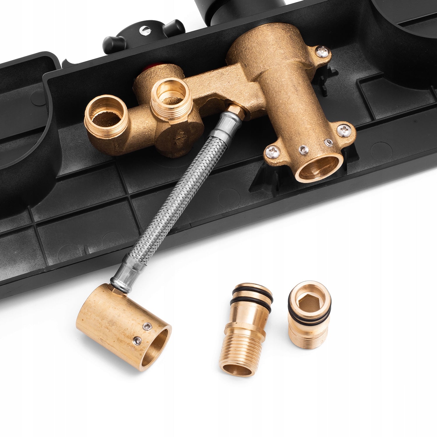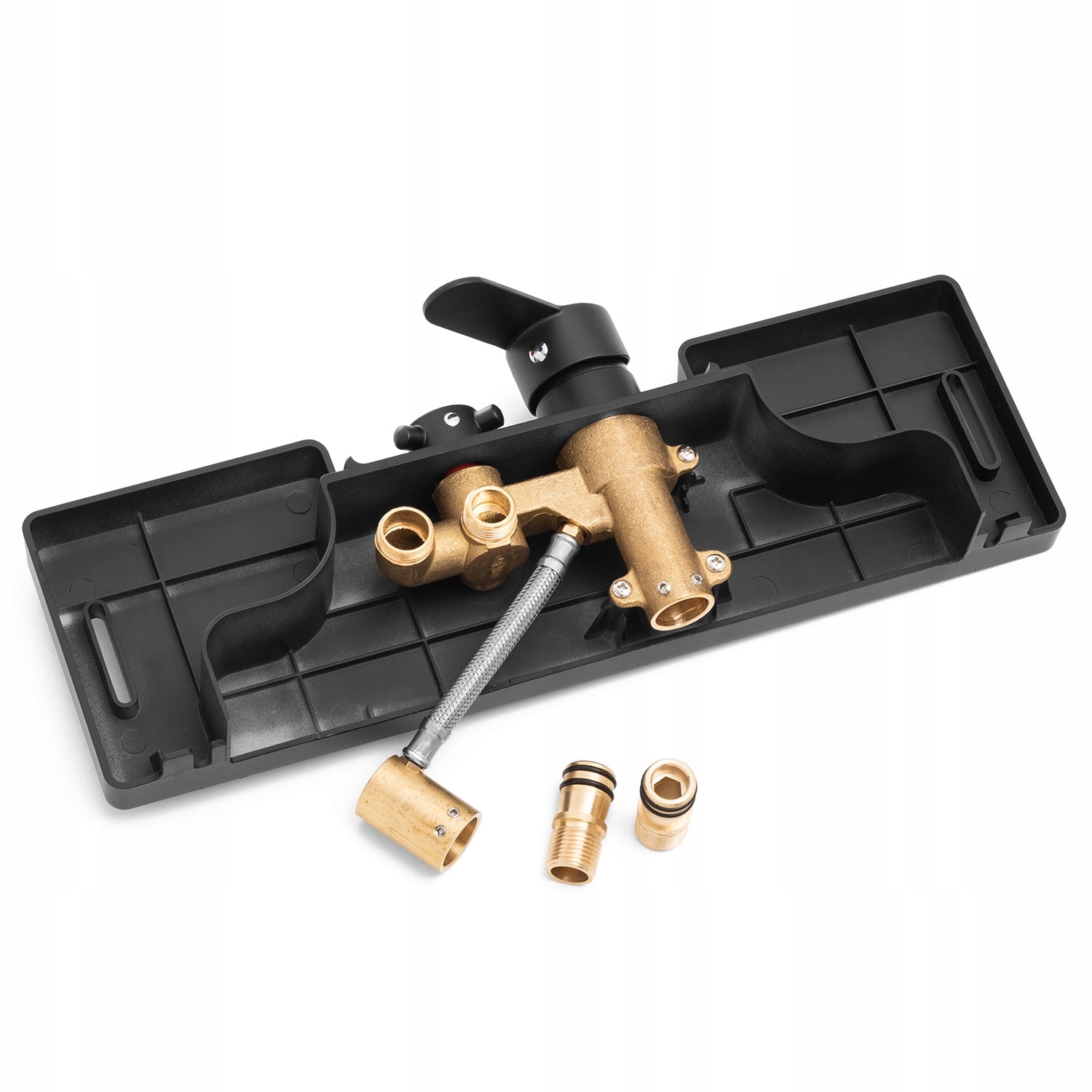 Pristatome jums naują prekės ženklo YOKA modelį. Komplekte yra mechaninis dušo maišytuvas su temperatūros maišytuvu, reguliatorius ir vandens srovės jungiklis tarp lietaus dušo, rankinio dušo ir snapelio. Skydelyje yra įrengta plati lentyna patogiems priedams. Matinis lentynos paviršius. Keraminė akumuliatoriaus galvutė (35 mm) garantuoja ilgaamžiškumą ir tvirtumą. Į komplektą įeina stilingas 30 x 30 cm lietaus dušas ir matinės juodos spalvos dušo galvutė – abi su modernia ANTI-CALC sistema. Komplekto dizainas atitinka naujausias tendencijas – atrodo itin elegantiškai ir puikiai dera moderniame vonios kambaryje.