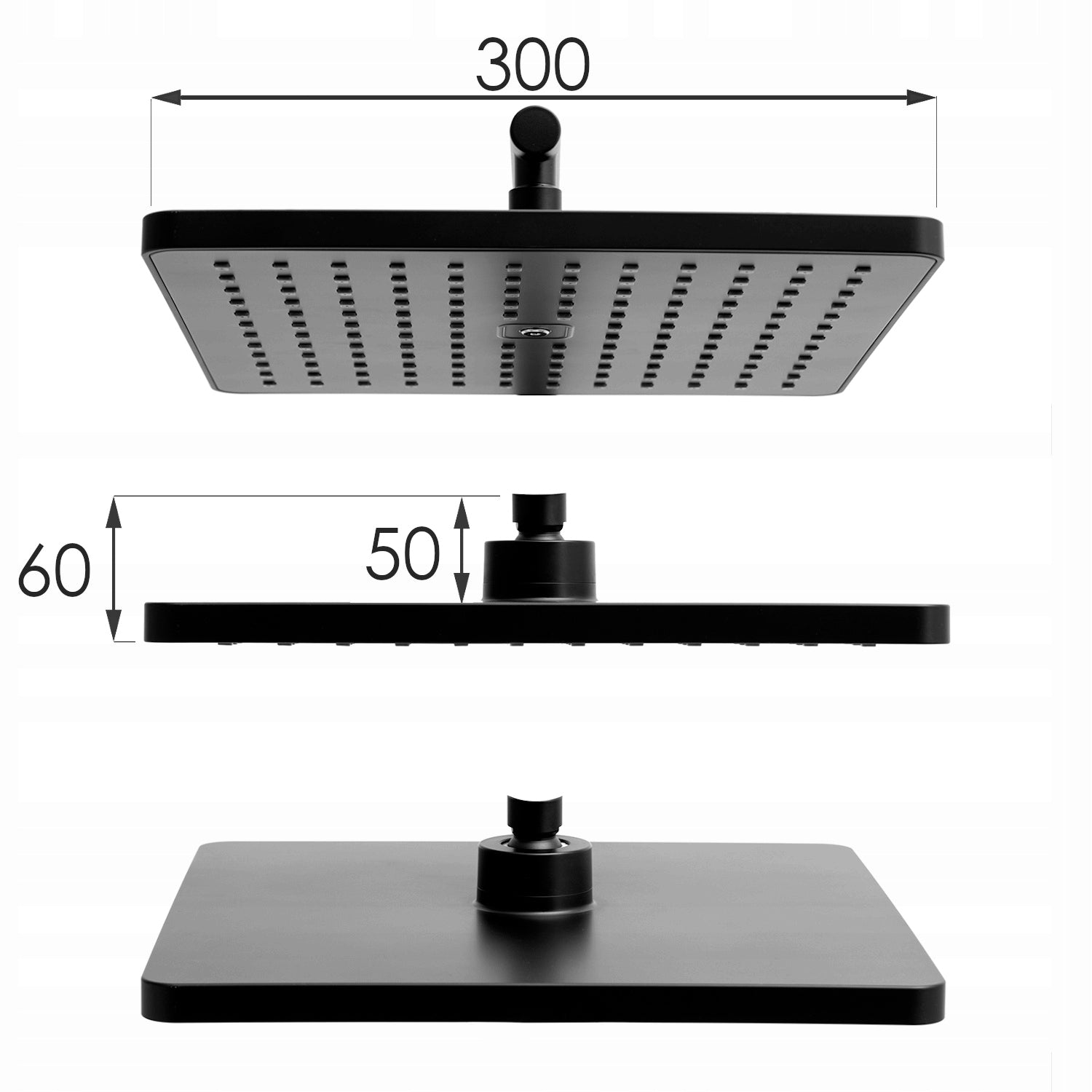 - Platus lietaus dušas, kurio matmenys 30 x 30 cm