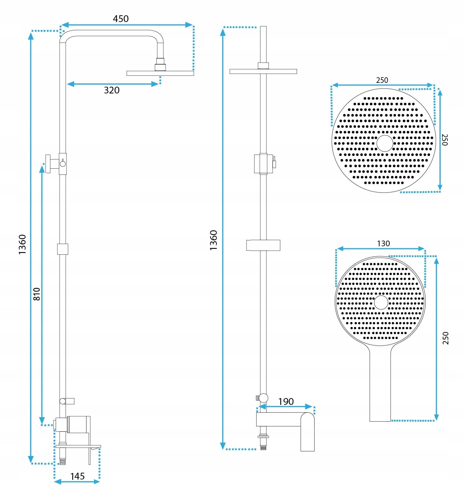 - Aukštis: Bendras sistemos aukštis yra 136 cm, todėl svarbu įvertinti, ar ši aukštis tinkama jūsų vonios kambario aukščiui ir asmeniniams poreikiams.