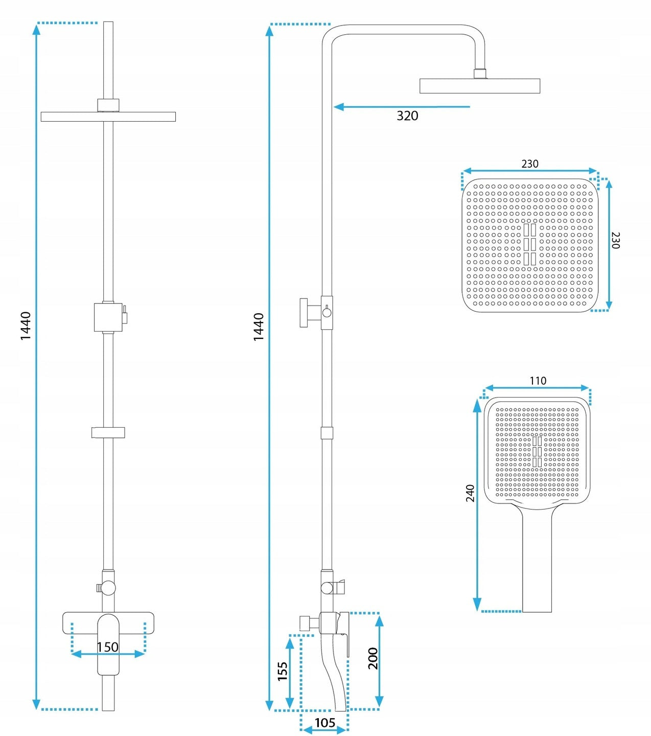 Lietaus dušo galvutės matmenys: 23 x 23 cm