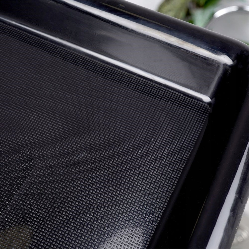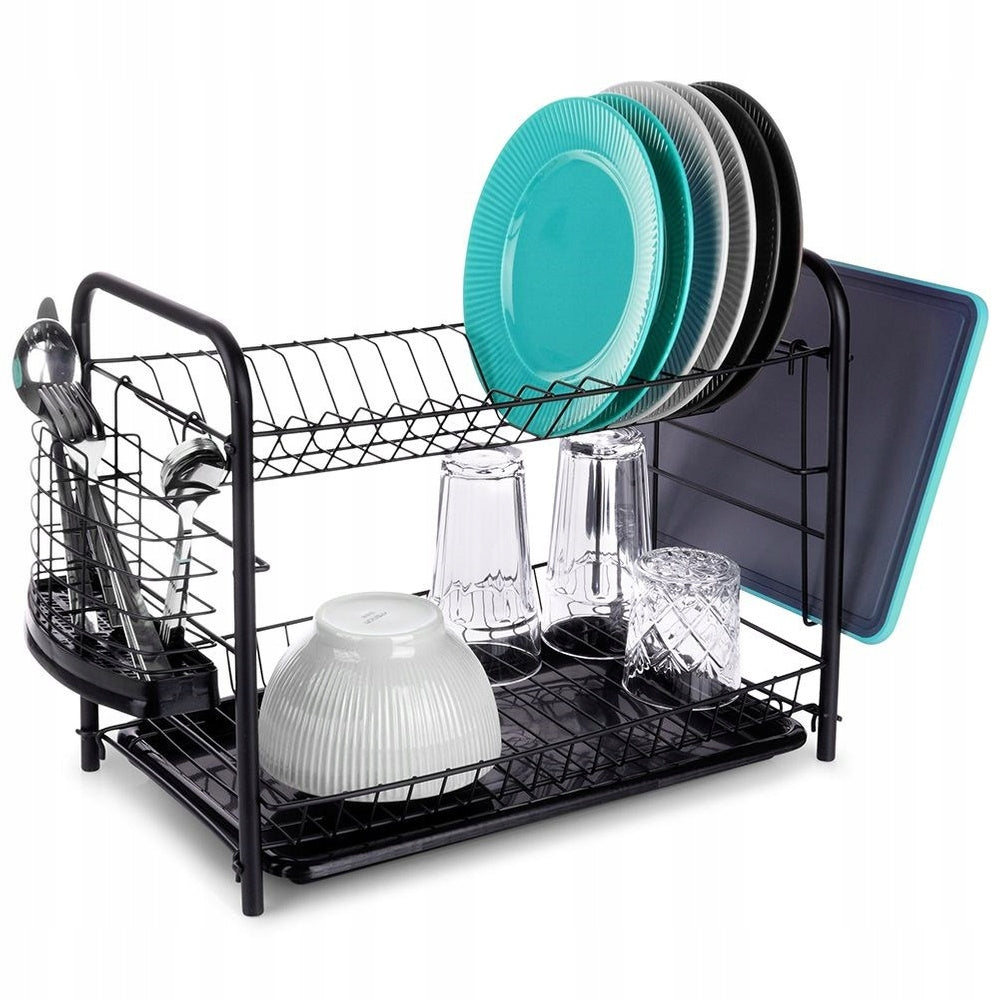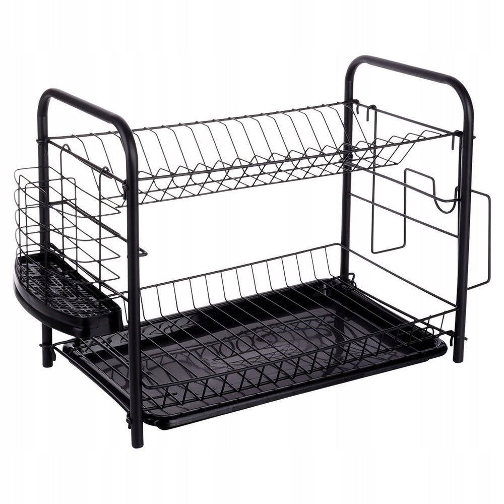 Ši erdvi džiovykla su dviem lygiais užtikrina greitesnį ir efektyvesnį indų džiūvimą. Viršutiniame aukšte patogiai sutalpinsite iki 16 lėkščių, o apatiniame – įvairius puodelius, dubenėlius ar stiklines. Papildomai, komplekte rasite nuimamą dviejų skyrių indą stalo įrankiams bei išorinį laikiklį pjaustymo lentelėms, kas dar labiau padidina džiovyklos praktiškumą. Jos modernus, juodas matinis dizainas puikiai dera prie bet kokio virtuvės interjero stiliaus – nuo industrinio lofto iki klasikinio. Dėl savo universalumo, džiovyklą galima statyti ant stalviršio arba tvirtinti prie sienos (tvirtinimo elementai į komplektą neįeina).