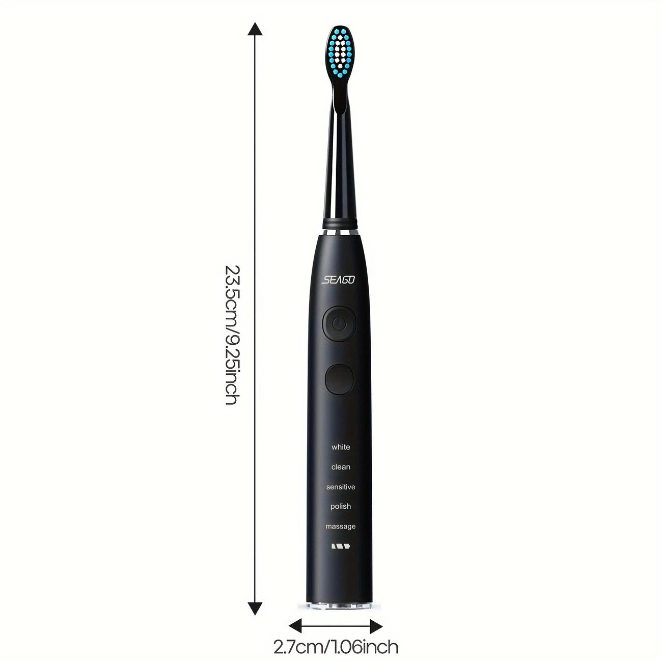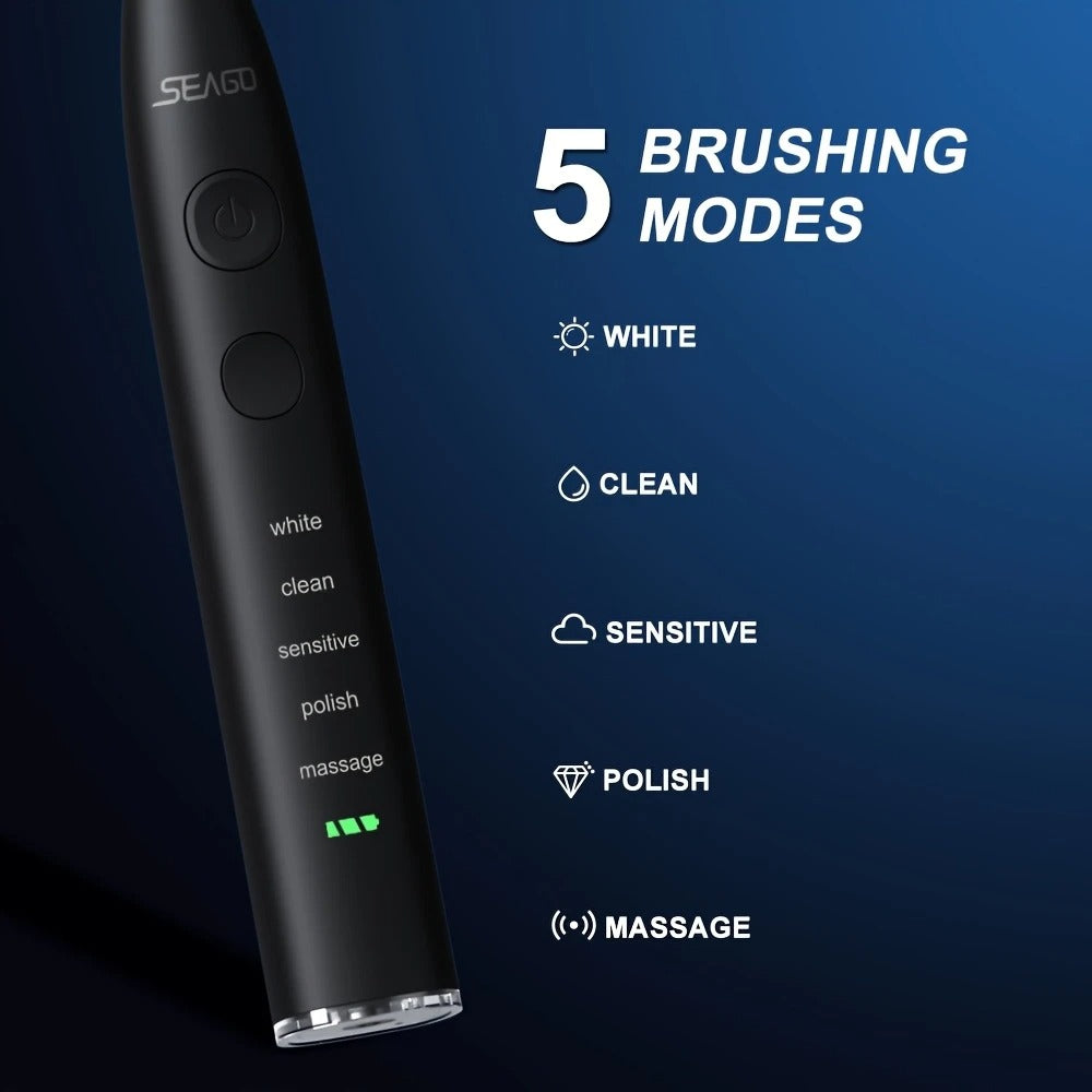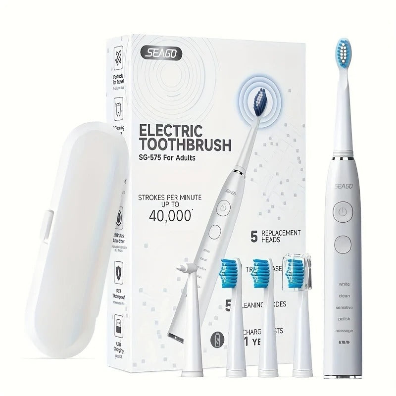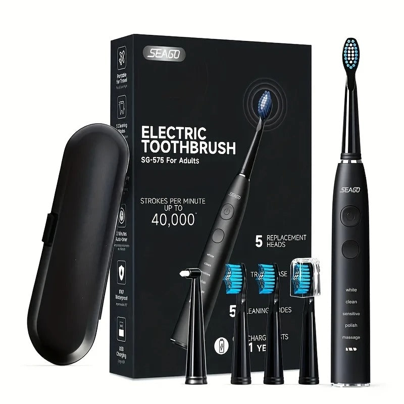 Elektrinis dantų šepetėlis su 5 antgaliais ir kelioniniu dėklu – Seago SG-575, 40 000 vib./min., 5 režimai, įkraunamas, veikia iki 1 metų