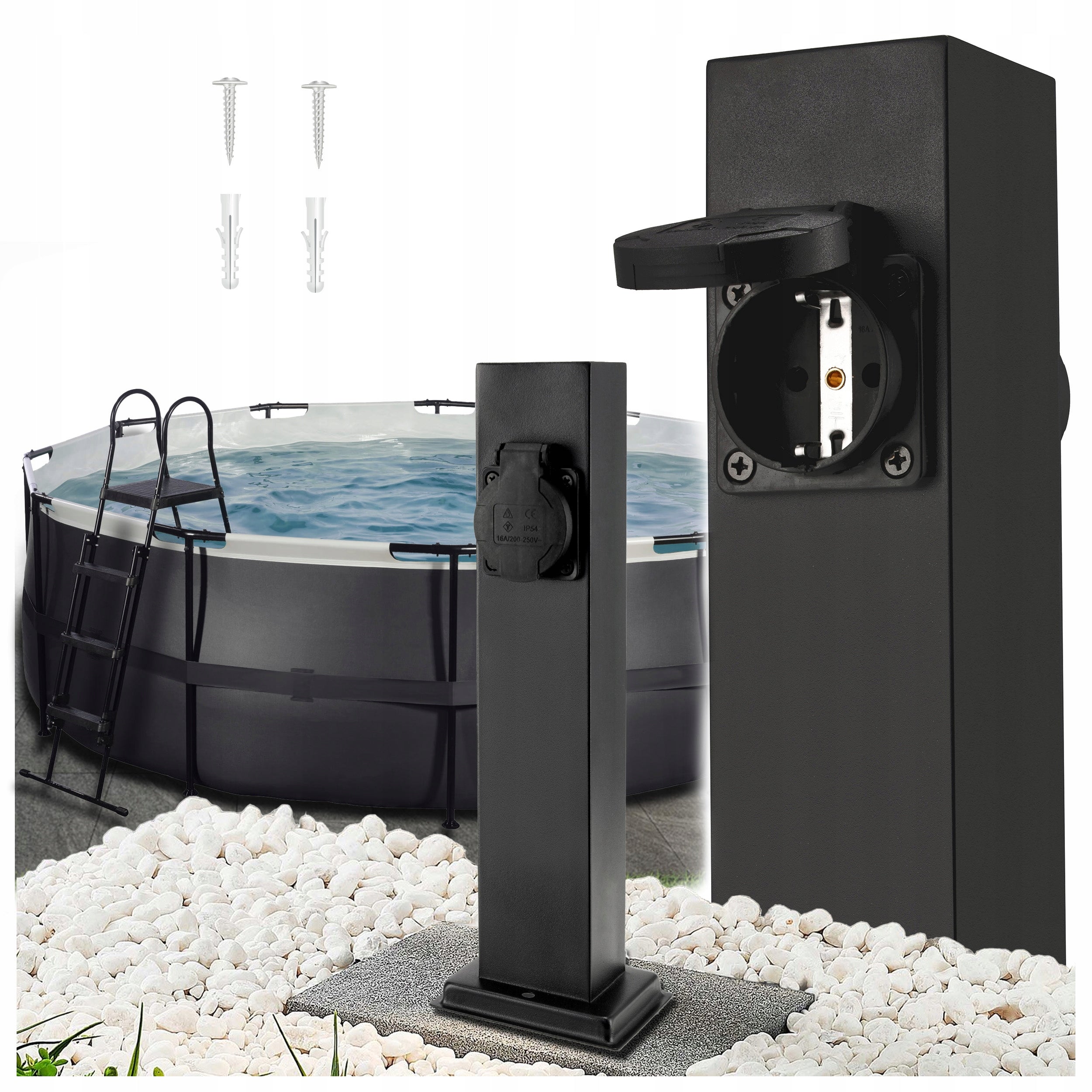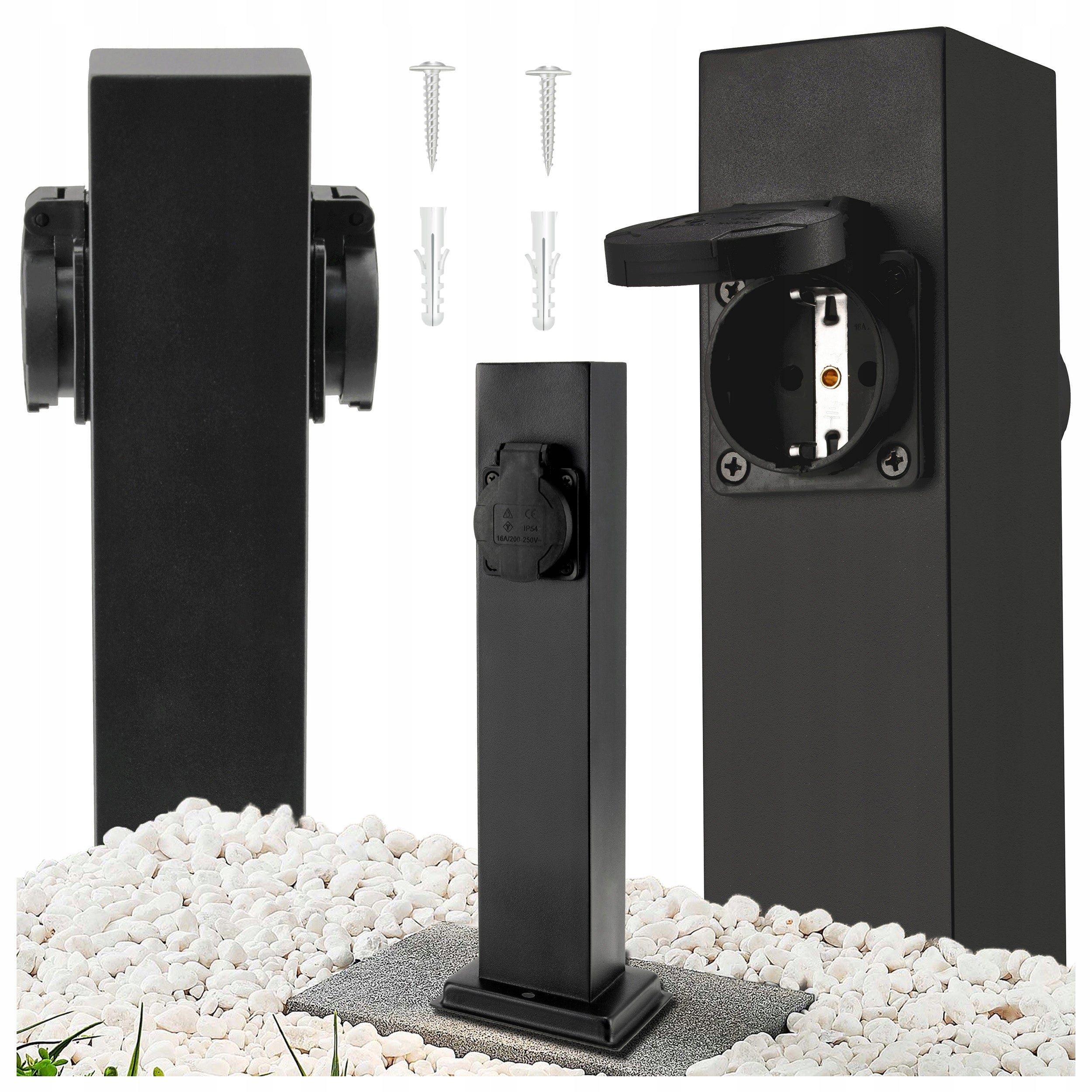 Elektrinis sodo stulpelis su 2 hermetiškais 16A lizdais, 30cm aukščio