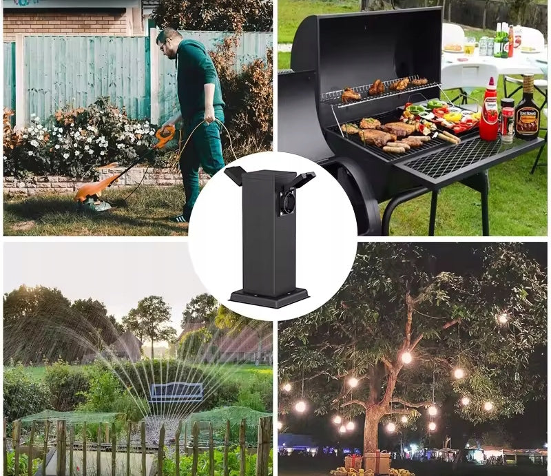 - Elektrinis sodo stulpelis-šviestuvas su 2 hermetiškais lizdais