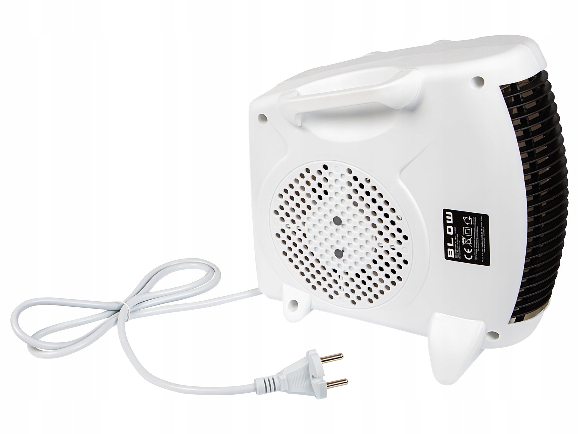 Lengvas, stabilus ir patogus nešioti įrenginys turi įmontuotą rankeną, neslystančią platų pagrindą bei saugų, užapvalintą dizainą, todėl yra saugus naudoti net ten, kur yra vaikų ar gyvūnų. Ventiliatorinis šildytuvas turi tris oro srautų režimus: neutralų – kaip įprastą ventiliatorių, šiltą – 1000W šildymui ir karštą – 2000W intensyviam šildymui. Aiškūs valdymo mygtukai ir indikatorius leidžia patogiai kontroliuoti temperatūrą ir oro srautą. Automatinė apsauga nuo perkaitimo užtikrina saugumą, o patvarios medžiagos garantuoja ilgaamžiškumą net intensyviai naudojant. Modernus baltos spalvos dizainas dera prie bet kokio interjero ir suteikia komfortą bei šilumą bet kuriuo metų laiku.