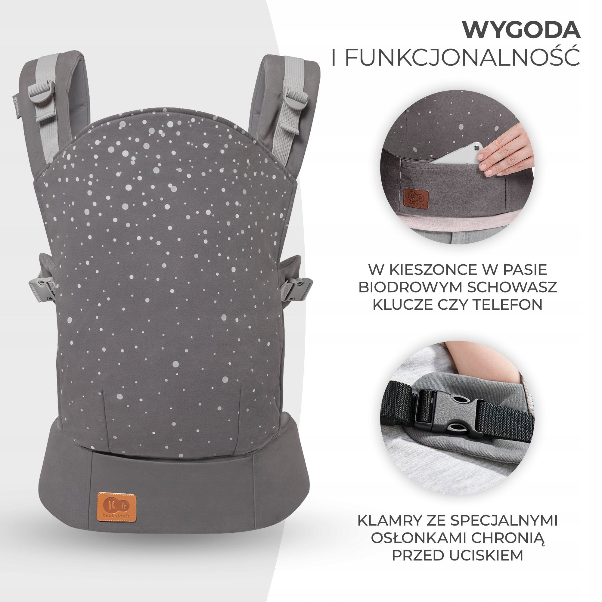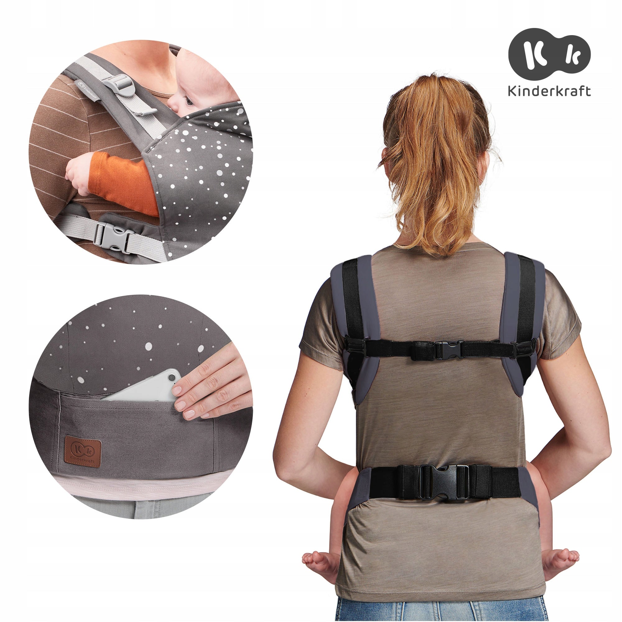 - Ergonomiškas Kinderkraft NINO nešiojimo krepšys (pilkos spalvos).