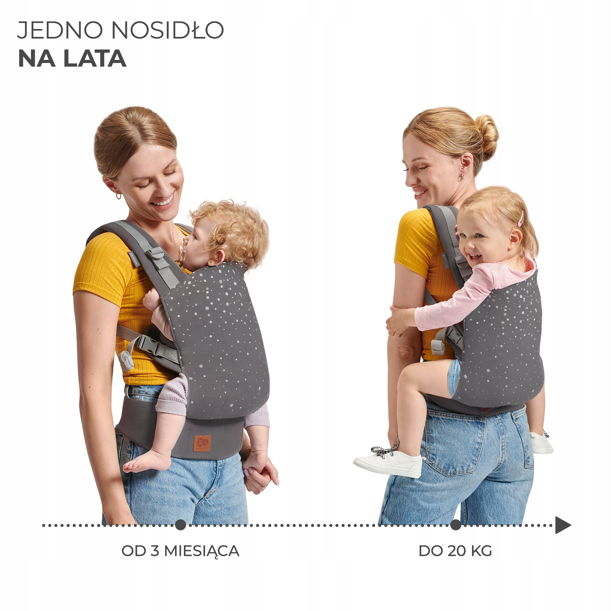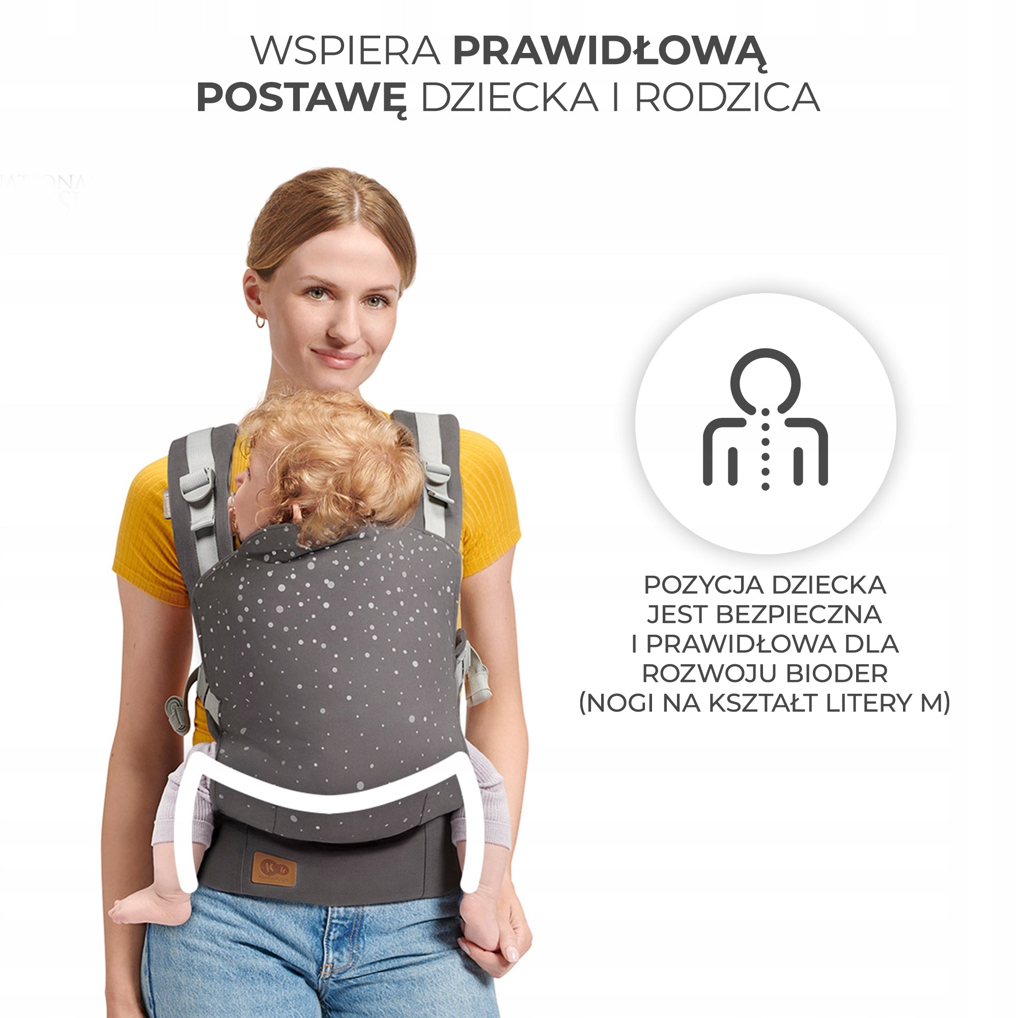 - Ergonomiškumas ir saugumas: Palaiko taisyklingą vaiko stuburo ir klubų vystymąsi (M pozicija, HIP sertifikatas).