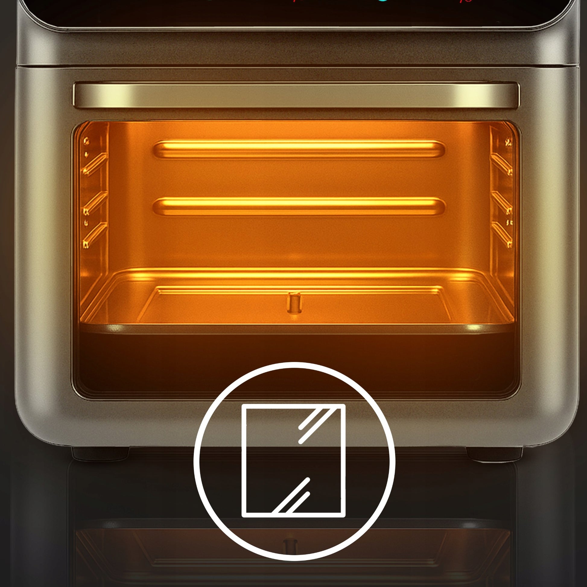 Ši be riebalų gruzdintuvė yra sukurtas atitikti šiuolaikinio žmogaus poreikius, siūlant ne tik sveikesnį maisto ruošimo būdą, bet ir sutaupant jūsų laiką bei energiją. Jos dėka galite kepti, skrudinti, griliuoti ir net džiovinti maistą, pakeisdami kelis virtuvės prietaisus vienu. Didelė 12 litrų talpa idealiai tinka visai šeimai – nuo traškių skrudintų bulvyčių iki visos keptos vištos ar didelės picos. Galėsite lengvai paruošti maistingus patiekalus greičiau nei su įprastu orkaitės funkcijomis, o inovatyvi karšto oro cirkuliacijos technologija užtikrina tolygiai traškią išorę ir sultingą vidų, naudojant iki 80% mažiau riebalų.