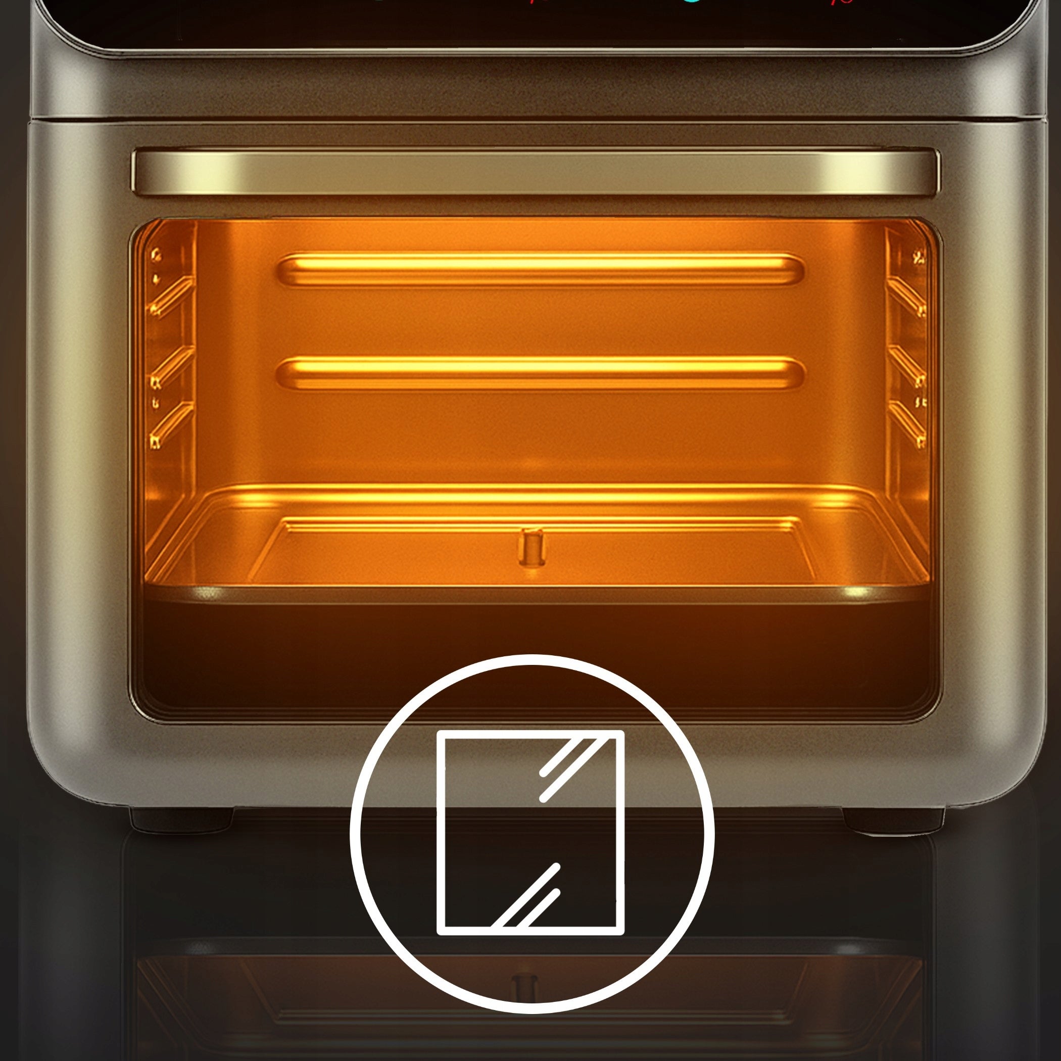 Su 10 automatinių darbo programų, pasirinkti tinkamą režimą niekada nebuvo taip paprasta. Nesvarbu, ar ruošiate fri, vištieną, žuvį, kepsnius, picą, daržoves, ar net desertus – vienas prisilietimas prie LED lietimui jautraus ekrano ir prietaisas automatiškai nustatys optimalų laiką bei temperatūrą. Be to, galimybė reguliuoti šiuos parametrus rankiniu būdu suteikia visišką kontrolę ir leidžia eksperimentuoti su jūsų mėgstamiausiais receptais. Papildomai įrengtas apšvietimas leidžia stebėti gaminimo procesą, neatidarant durelių.