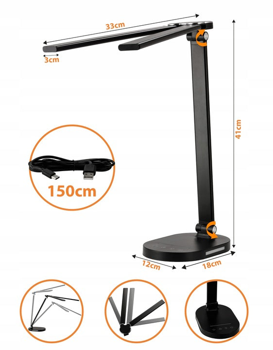 Mūsų dviguba LED stalinė lempa sukurta atsižvelgiant į modernius biuro ir namų aplinkos poreikius. Joje integruota net 80 aukštos kokybės 2835 LED diodų, kurie užtikrina tolygų ir kokybišką apšvietimą be mirgėjimo. Maitinama standartine 5V DC įtampa per USB, todėl ją galima lengvai prijungti prie kompiuterio, nešiojamojo kompiuterio ar bet kurio kito USB adapterio. Pagaminta iš tvirto aliuminio ir ABS plastiko, ji pasižymi ilgaamžiškumu ir atsparumu kasdieniam naudojimui. Tai idealus sprendimas studentams, biurų darbuotojams ir visiems, kuriems svarbi kokybiška darbo erdvės apšvieta.