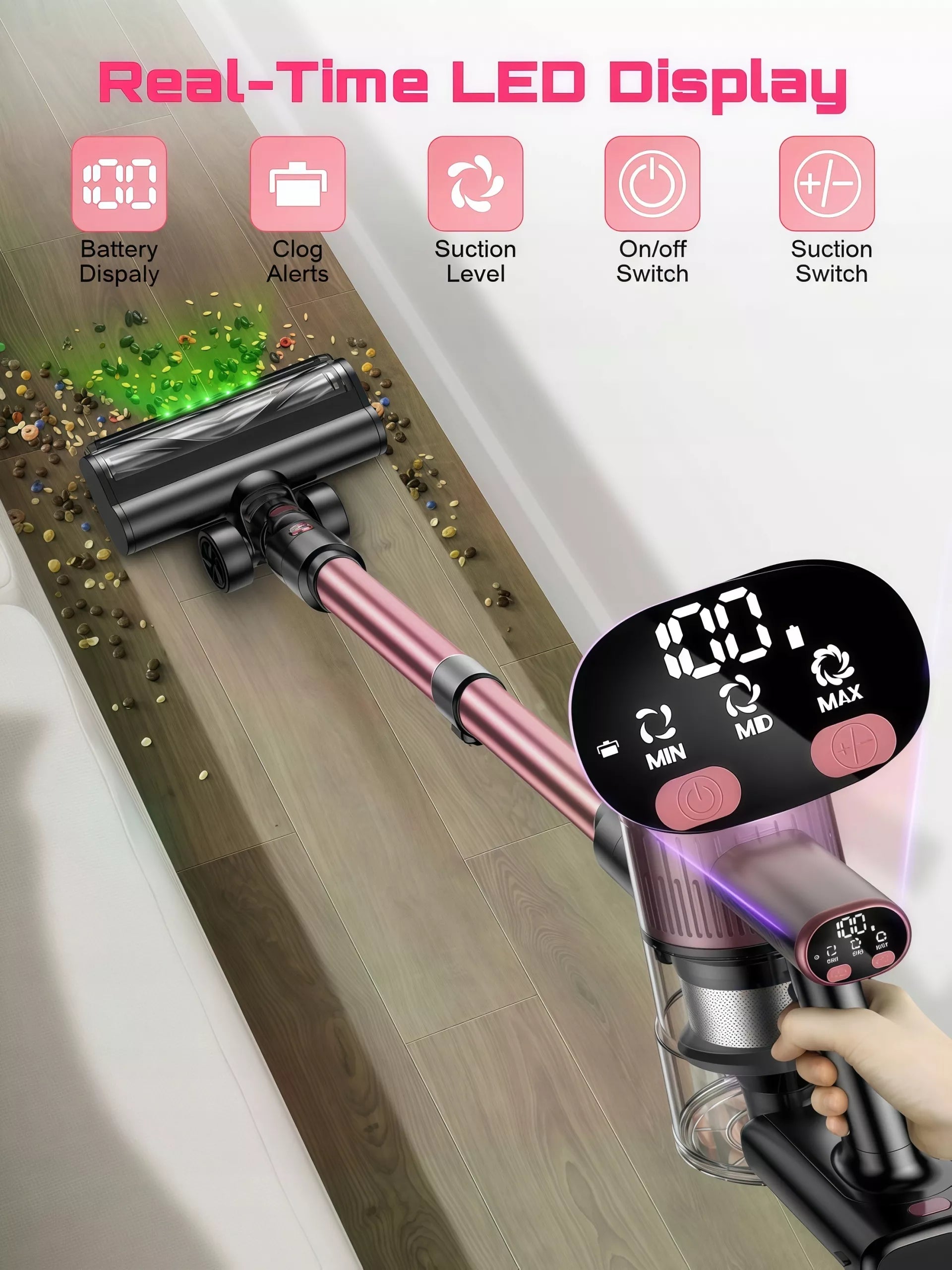 Laresar V7 pasižymi pažangia H10 HEPA filtravimo sistema, kuri sulaiko 99,97% dulkių, žiedadulkių ir alergenų. Tai idealus pasirinkimas alergiškiems žmonėms, vertinantiems gryną orą. Ergonomiškas dizainas ir intuityvus LED ekranas leidžia lengvai kontroliuoti akumuliatoriaus būseną bei reguliuoti siurbimo režimus, kad valymas būtų optimaliai pritaikytas pagal jūsų poreikius.