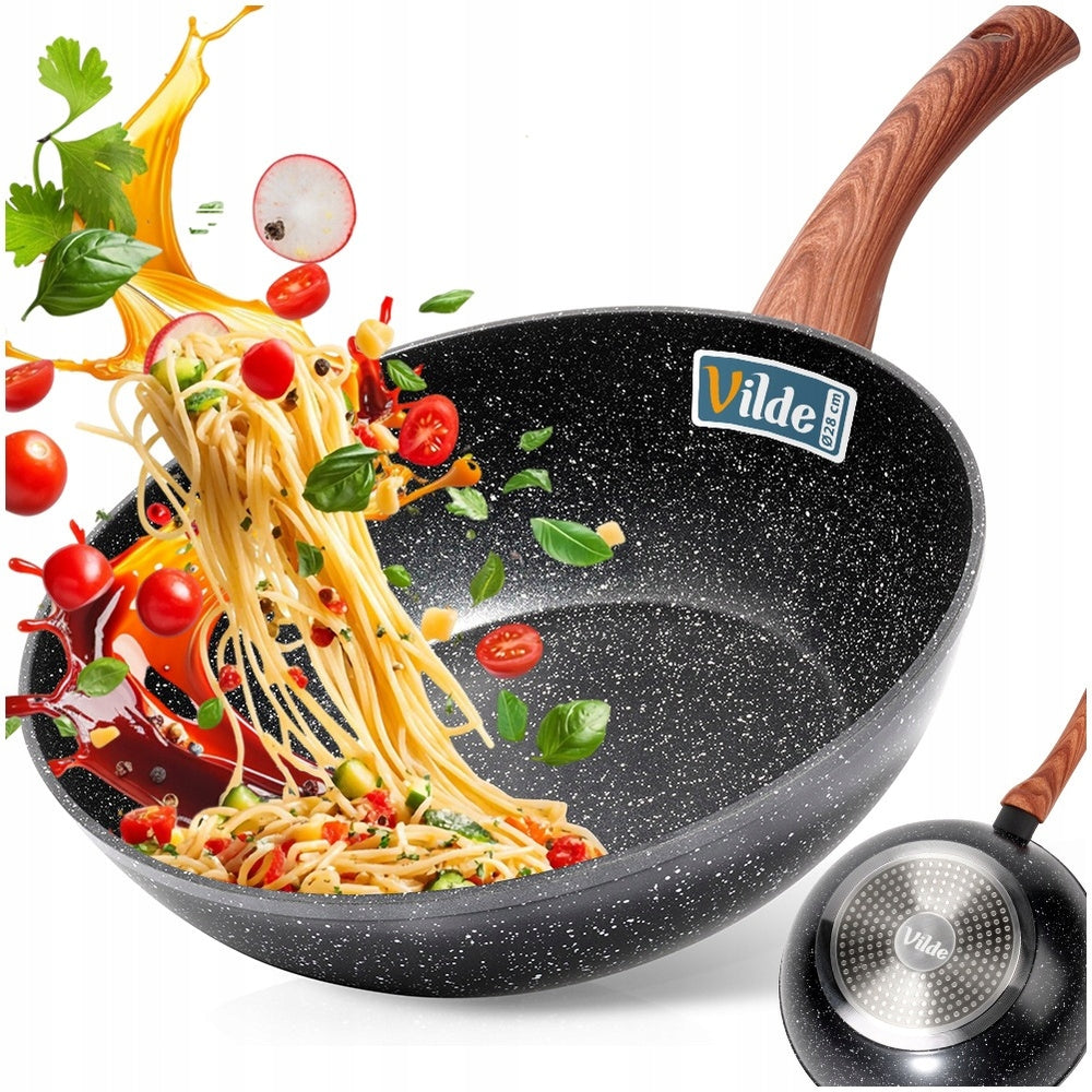 Atraskite naujus skonius su mūsų 28 cm skersmens giliu Wok keptuvu, sukurtu specialiai azijietiškos virtuvės mėgėjams. Šis keptuvas ne tik leis lengvai kepti ir troškinti įvairiausius patiekalus, bet ir suteiks jūsų maisto gaminimo procesui naują kokybės ir patogumo lygį. Dėl gilios formos ir optimalaus dydžio, jis idealiai tinka didesniems kiekiams produktų maišyti ir greitai kepti, išlaikant visų ingredientų šviežumą ir skonį. Sukurtas iš aukščiausios kokybės aliuminio, šis Wok keptuvas pasižymi ilgaamžiškumu ir efektyviu šilumos paskirstymu, užtikrinant greitą ir tolygų maisto paruošimą. Jo modernus dizainas, juodos spalvos su medienos imitacijos detalėmis, papuoš bet kurią virtuvę.