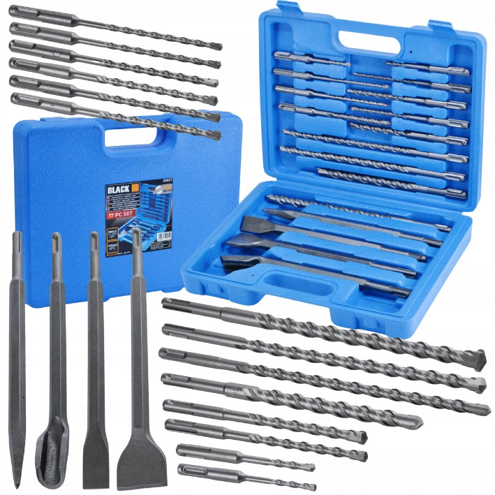 Grąžtų ir kalčių SDS Plus SDS+ rinkinys lagaminėlyje, 17 vnt. BLACK