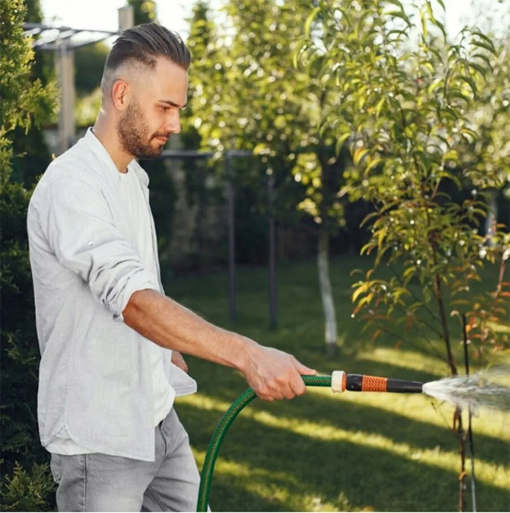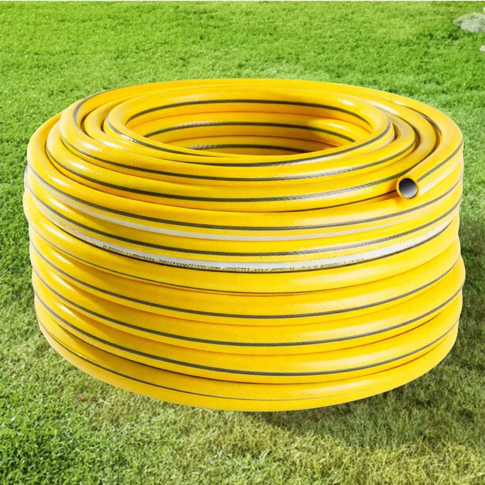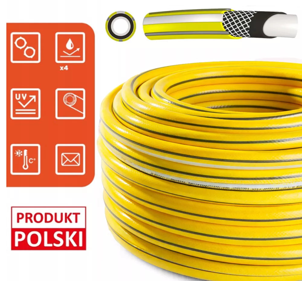 Šis aukščiausios kokybės 30 metrų ilgio KUGOgarden sodo žarnos rinkinys yra idealus sprendimas profesionaliam ir mėgėjiškam laistymui. Žarna pasižymi 4 sluoksnių struktūra, sustiprinta tekstiliniu apvyniojimu, todėl yra itin atspari slėgiui ir mechaniniams pažeidimams. Pagaminta iš lankstaus PVC, ji išlaiko savo savybes nuo -25°C iki +60°C temperatūroje. Tai patvarus ir ekologiškas pasirinkimas, užtikrinantis ilgalaikį naudojimą be nuotėkių ar žarnos sluoksnių atsiskleidimo.