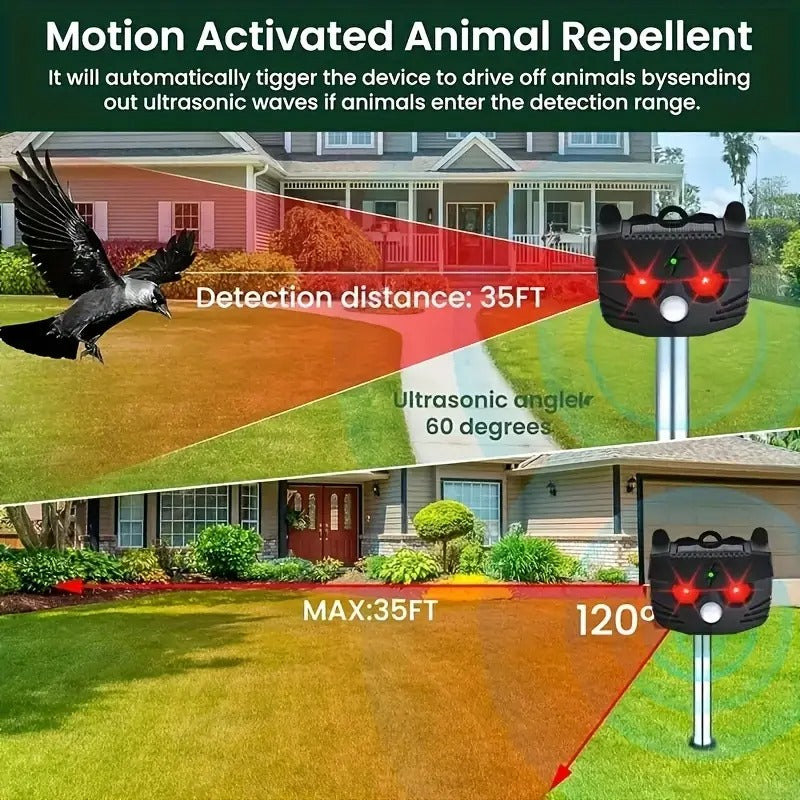 Gyvūnų atbaidymo prietaisas su atnaujinta garso bangų technologija – tai veiksminga ir ekologiška apsauga jūsų sodo, ūkio ar kiemo teritorijai. 2025 metų modelis, sukurtas pagal naujausius inžinerinius sprendimus, efektyviai atbaido kates, šunis, voveres, skunksus, paukščius, meškėnus ir kitus laukinius gyvūnus, kurie gali pakenkti jūsų augalams, vištoms ar nuosavybei. Prietaisas maitinamas saulės energija, todėl nereikia jokių elektros laidų ar papildomų baterijų – jis veikia visiškai savarankiškai. Įmontuota įkraunama nikelio baterija kaupia energiją dienos metu ir užtikrina patikimą veikimą naktį.