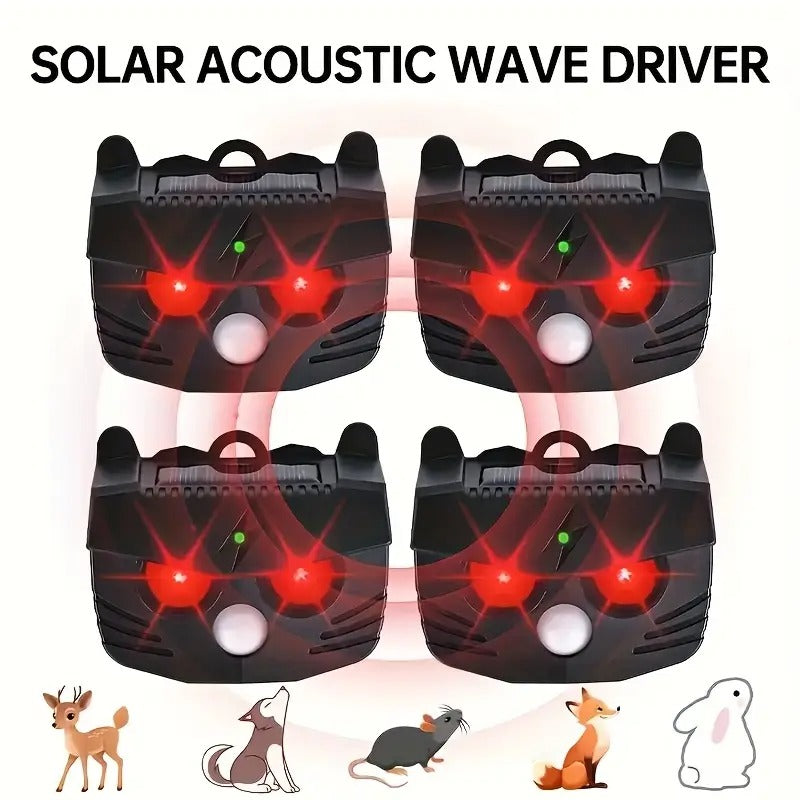 Gyvūnų atbaidymo prietaisas su garso bangų technologija, saulės energija maitinamas laukinių gyvūnų, kačių, šunų, voverių, skunksų ir paukščių atbaidymui JKUOO – apsauga sodui, ūkiui ir kiemui