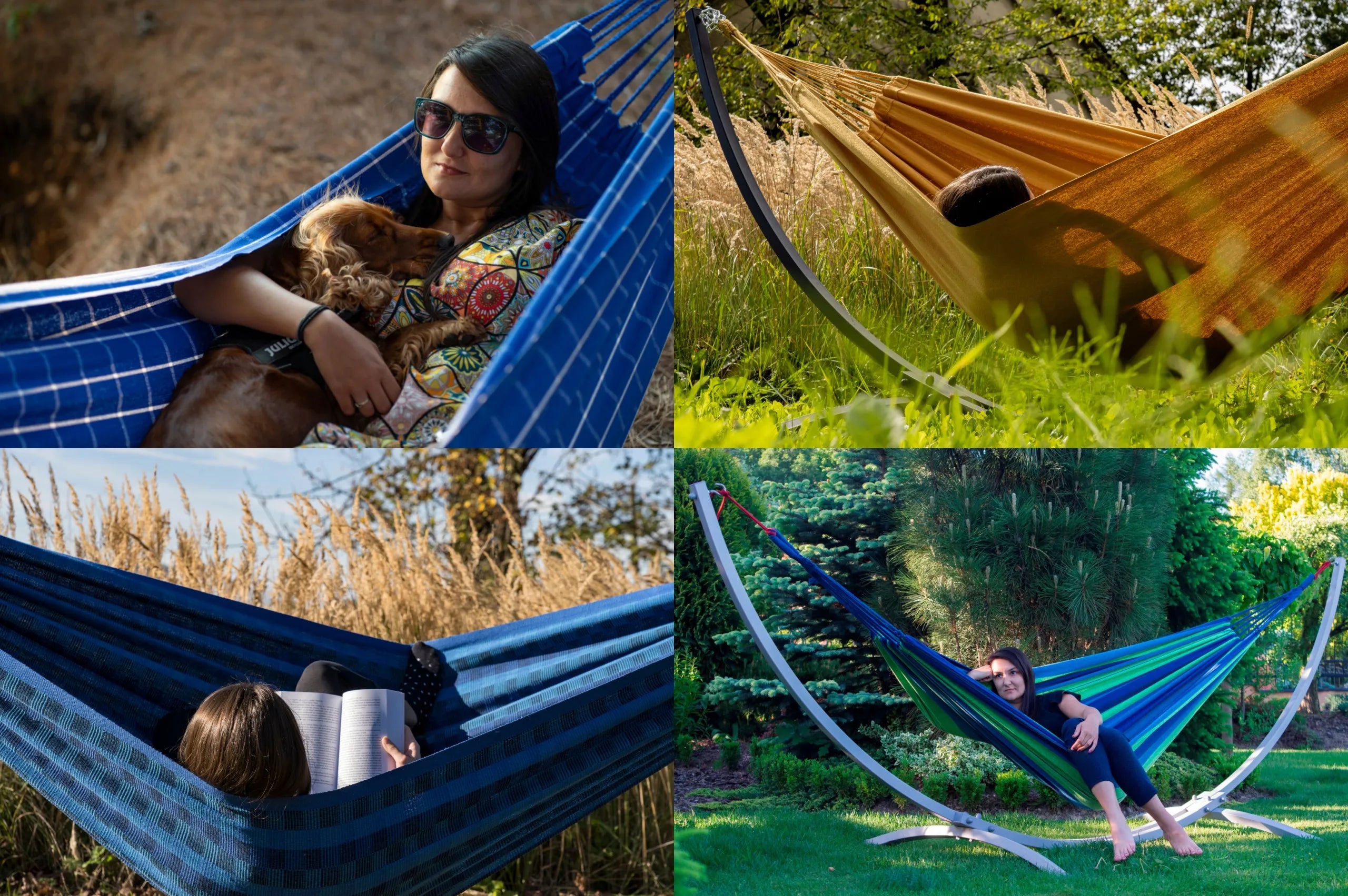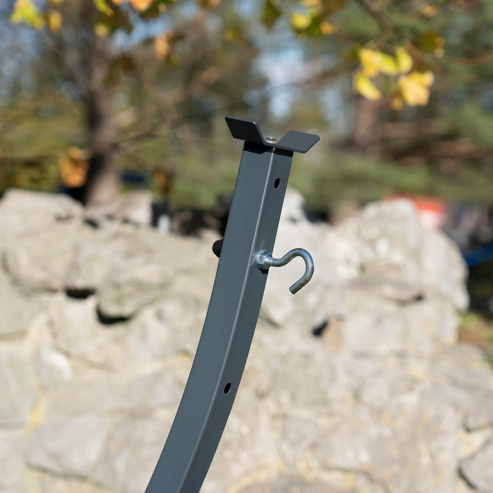 - Privalumai: Ypač tvirtas, smėliasrove apdorotas ir milteliniu būdu dažytas plienas; didelė hamako gramatūra užtikrina ilgaamžiškumą; patentuotos pėdutės stabilumui ir paviršiaus apsaugai; paprastas aukščio reguliavimas.