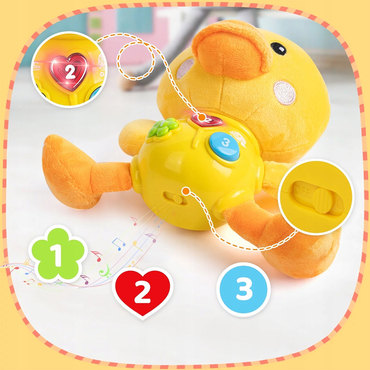 Susipažinkite su mūsų nuostabia interaktyvia antis – minkšta pliušine žaisline antis, kuri ne tik džiugina akį, bet ir aktyviai įtraukia jūsų mažylį į žaidimą. Ši žavinga kaczka yra sukurta tam, kad skatintų vaiko smalsumą ir vystymąsi per garsus, melodijas ir švieseles. Jos minkštas, malonus liesti paviršius ir draugiška išvaizda padarys ją nepakeičiamu žaidimų palydovu. Tai puiki dovana, kuri pradžiugins kiekvieną vaiką nuo 18 mėnesių amžiaus, suteikdama valandų valandas džiugesio ir mokymosi.