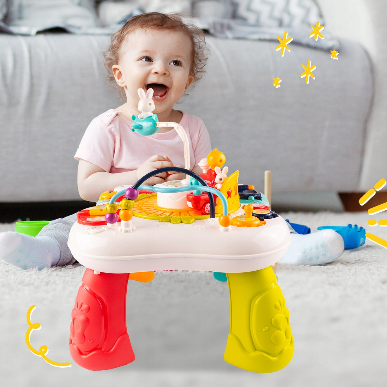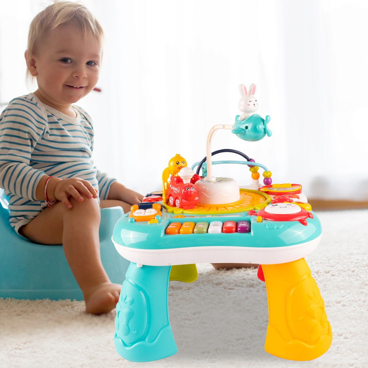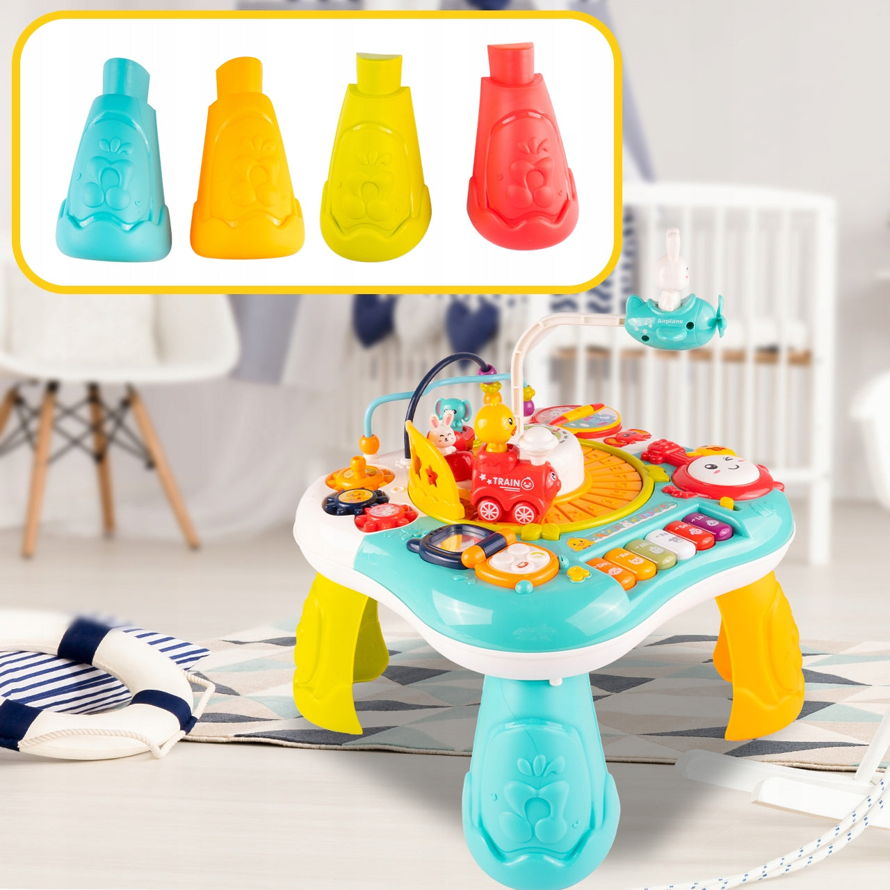 Šis žavingas edukacinis stalelis yra sukurtas tam, kad jūsų vaikas galėtų smagiai ir produktyviai leisti laiką. Jame gausu įvairiausių interaktyvių elementų, skatinančių mažylio smalsumą ir lavinančių jo gebėjimus. Nuo spalvingų klavišų, skleidžiančių linksmus garsus ir melodijas, iki besisukančių ratukų bei šviečiančių mygtukų – kiekvienas elementas yra apgalvotas, siekiant maksimalaus vaiko užimtumo ir lavinimo. Tai puiki priemonė pažinti spalvas, formas ir garsus.