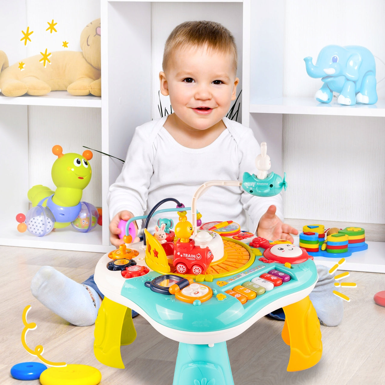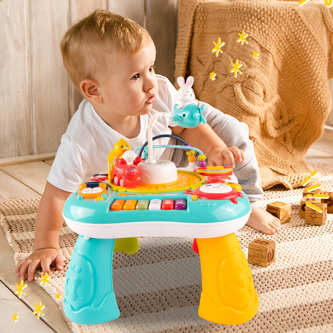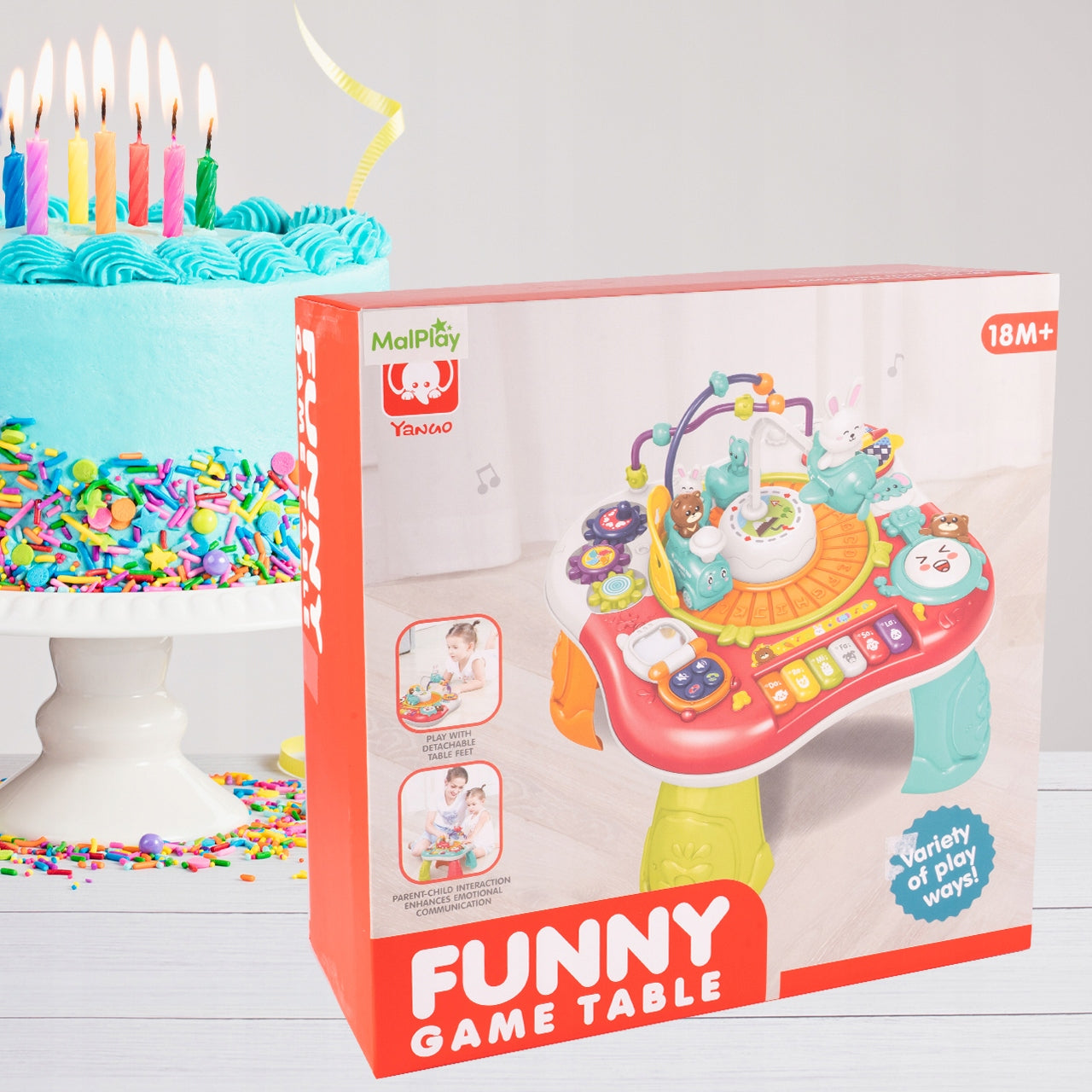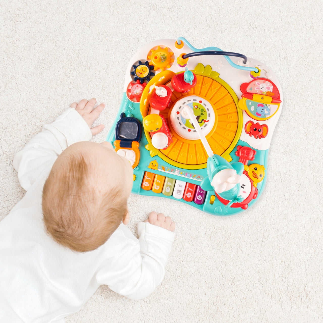 Šis žavingas edukacinis stalelis yra sukurtas tam, kad jūsų vaikas galėtų smagiai ir produktyviai leisti laiką. Jame gausu įvairiausių interaktyvių elementų, skatinančių mažylio smalsumą ir lavinančių jo gebėjimus. Nuo spalvingų klavišų, skleidžiančių linksmus garsus ir melodijas, iki besisukančių ratukų bei šviečiančių mygtukų – kiekvienas elementas yra apgalvotas, siekiant maksimalaus vaiko užimtumo ir lavinimo. Tai puiki priemonė pažinti spalvas, formas ir garsus.