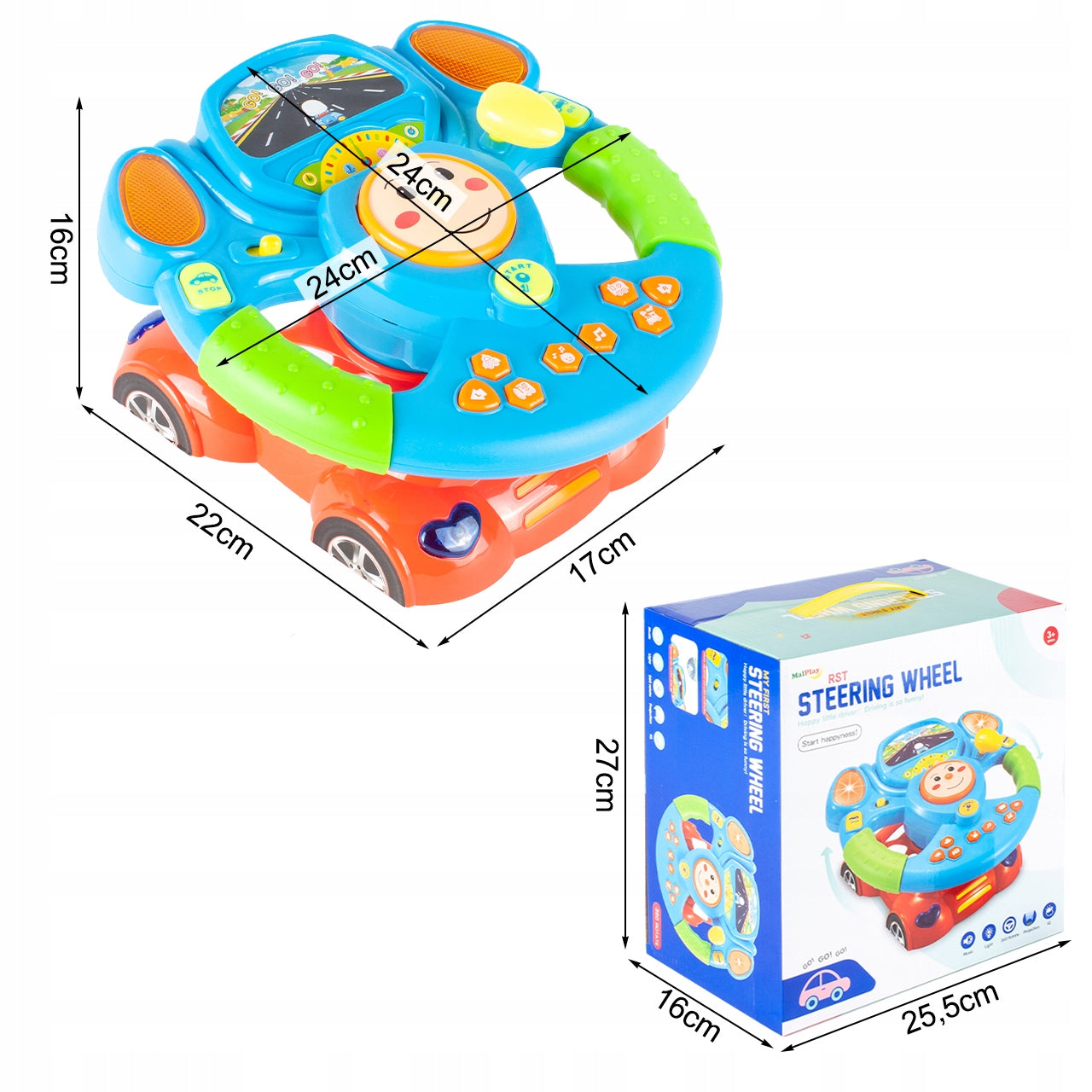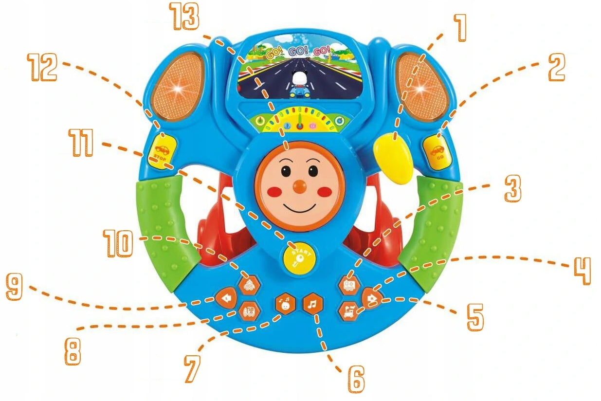Šis edukacinis vairas siūlo daugybę funkcijų, kurios ilgam užims jūsų vaiką ir suteiks jam ne tik pramogą, bet ir mokymosi patirtį. Kiekvienas mygtukas ir funkcija yra apgalvota taip, kad atkartotų tikro automobilio valdymą, lavindama vaiko smulkiosios motorikos įgūdžius bei gebėjimą atpažinti garsus ir spalvas. Vairas turi net 13 skirtingų funkcijų, kurios apima garsų imitacijas, melodijas ir daineles, papildytas šviesos efektais, kurie daro žaidimą dinamiškesniu ir patrauklesniu.