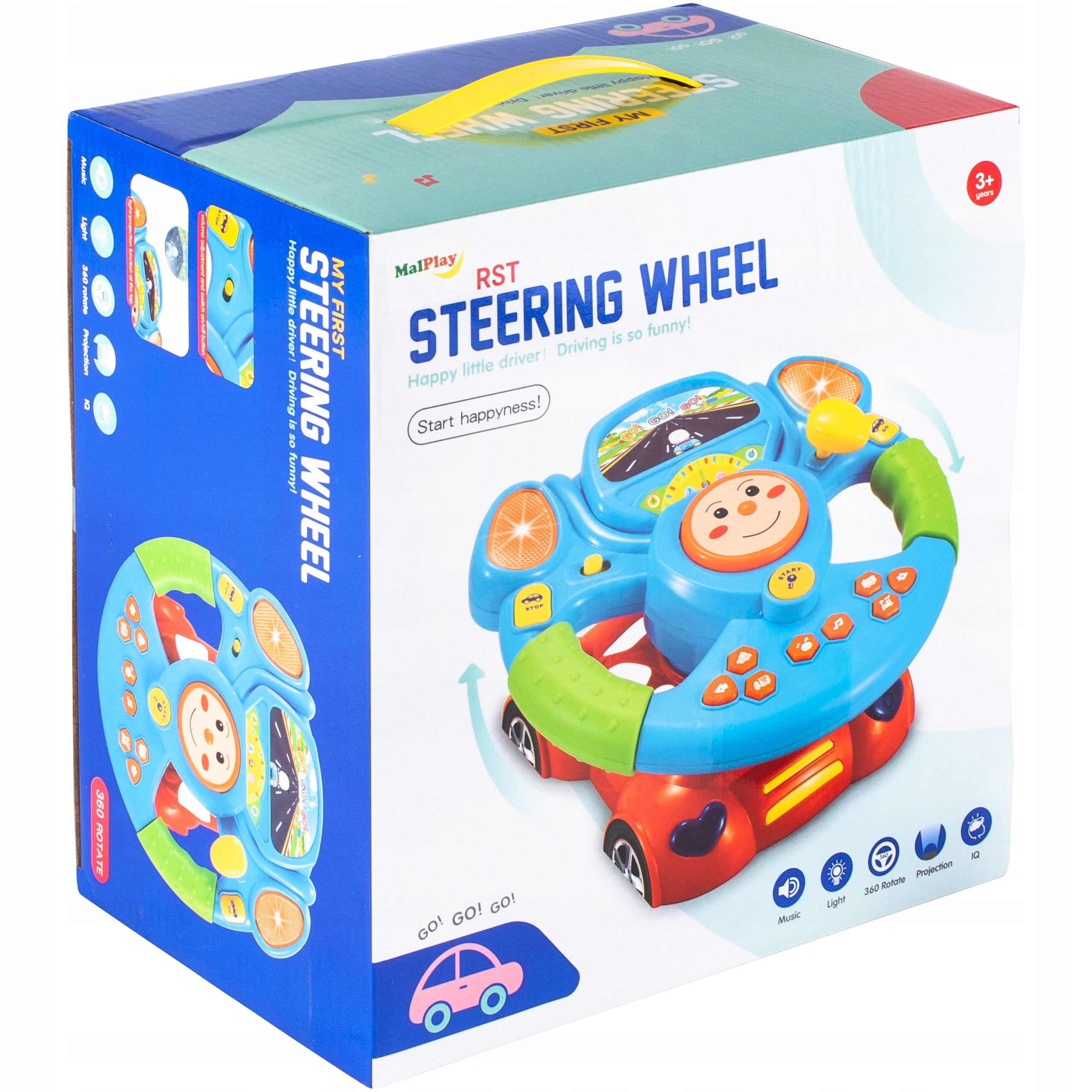 Šis žaislas yra tikra svajonė kiekvienam mažajam vairuotojui. Vairas sukasi 360 laipsnių kampu, suteikdamas tikroviškumo pojūtį. Priekyje integruotas projektorius, kuris rodo mielą pandą, vairuojančią automobilį, papildomai sužavės jūsų vaiką. Žaislas dainuoja ir kalba (anglų kalba), atkuria 10 skirtingų melodijų ir 4 linksmos dainelės, kartu skleisdamas daugybę spalvingų šviesos efektų. Tai ne tik linksmas, bet ir edukacinis žaislas, skatinantis vaiko pažintinių gebėjimų, koordinacijos ir vaizduotės vystymąsi. Realistiškas garso signalas, posūkių indikatoriai ir pavarų perjungimo imitacija daro žaidimą dar įdomesnį.