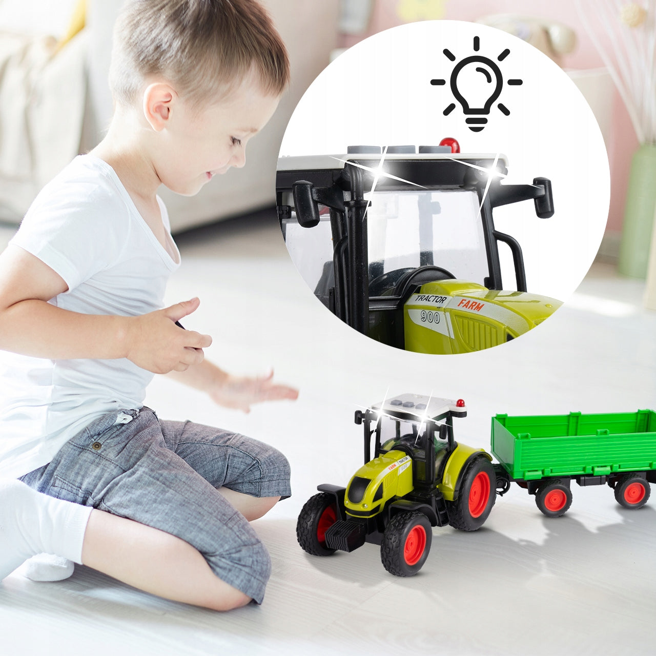 Interaktyvus ūkininko traktorius su priekaba, šviesos ir garso efektai