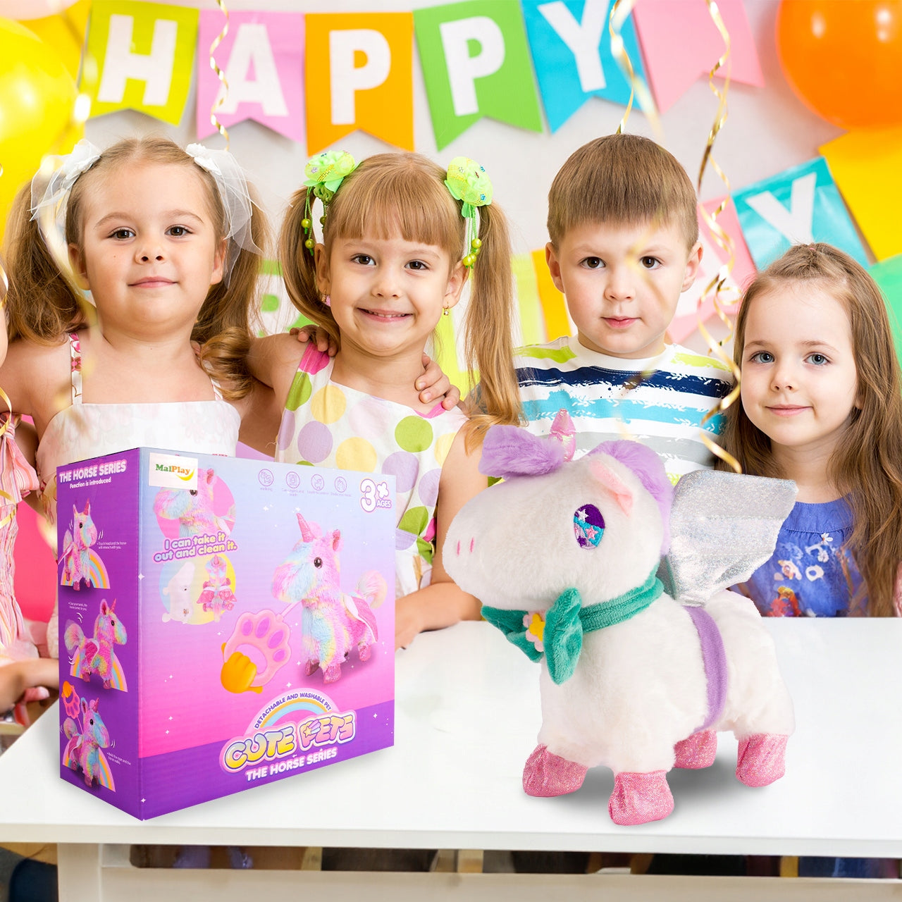 Kiekvienas vaikas svajoja apie savo stebuklingą draugą, o šis interaktyvus pliušinis vienaragis yra svajonė, tapusi tikrove! Sukurtas su meile ir dėmesiu detalėms, šis minkštas žaislas taps neatsiejama jūsų mažylio kasdienybės dalimi. Vienaragis ne tik atrodo žavingai, bet ir atgyja – jis gali vaikščioti, skleisti malonius garsus ir reaguoti į vaiko veiksmus, suteikdamas daugybę valandų linksmybių ir nuotykių. Jo minkštas kailis kviečia apkabinti, o didelės, blizgančios akys žada neišsemiamą draugystę. Leiskite savo vaikui pajusti tikro augintinio džiaugsmą ir atsakomybę – su šiuo vienaragiu tai bus paprasta ir smagu!