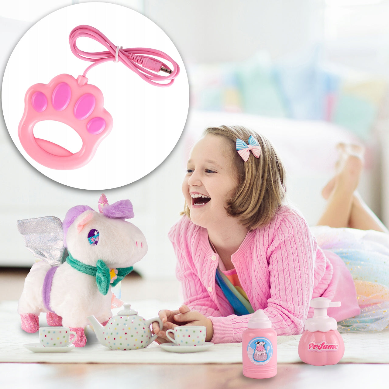 Šis unikalus vienaragis siūlo ne tik minkštą prisilietimą, bet ir tikrą interaktyvumo patirtį. Atsukite galvos ir uodegos mygtuką, ir stebėkite, kaip jūsų vienaragis pradeda judėti! Jis žengia pirmyn, siūbuoja uodegytę ir skleidžia nuostabius žirgo garsus, imituodamas tikrą pasijodinėjimą. Kad žaidimas būtų dar įdomesnis, komplekte yra patogus pultelis, pagamintas mielos letenėlės formos. Jį galima pritvirtinti prie vienaragio nugaros, leisdamas vaikui lengvai valdyti savo stebuklingąjį draugą. Tai puiki galimybė lavinti vaiko koordinaciją ir atsakomybės jausmą, prižiūrint savo virtualų augintinį.