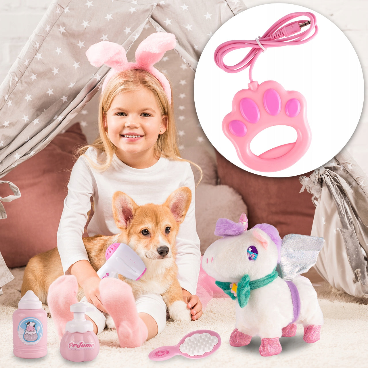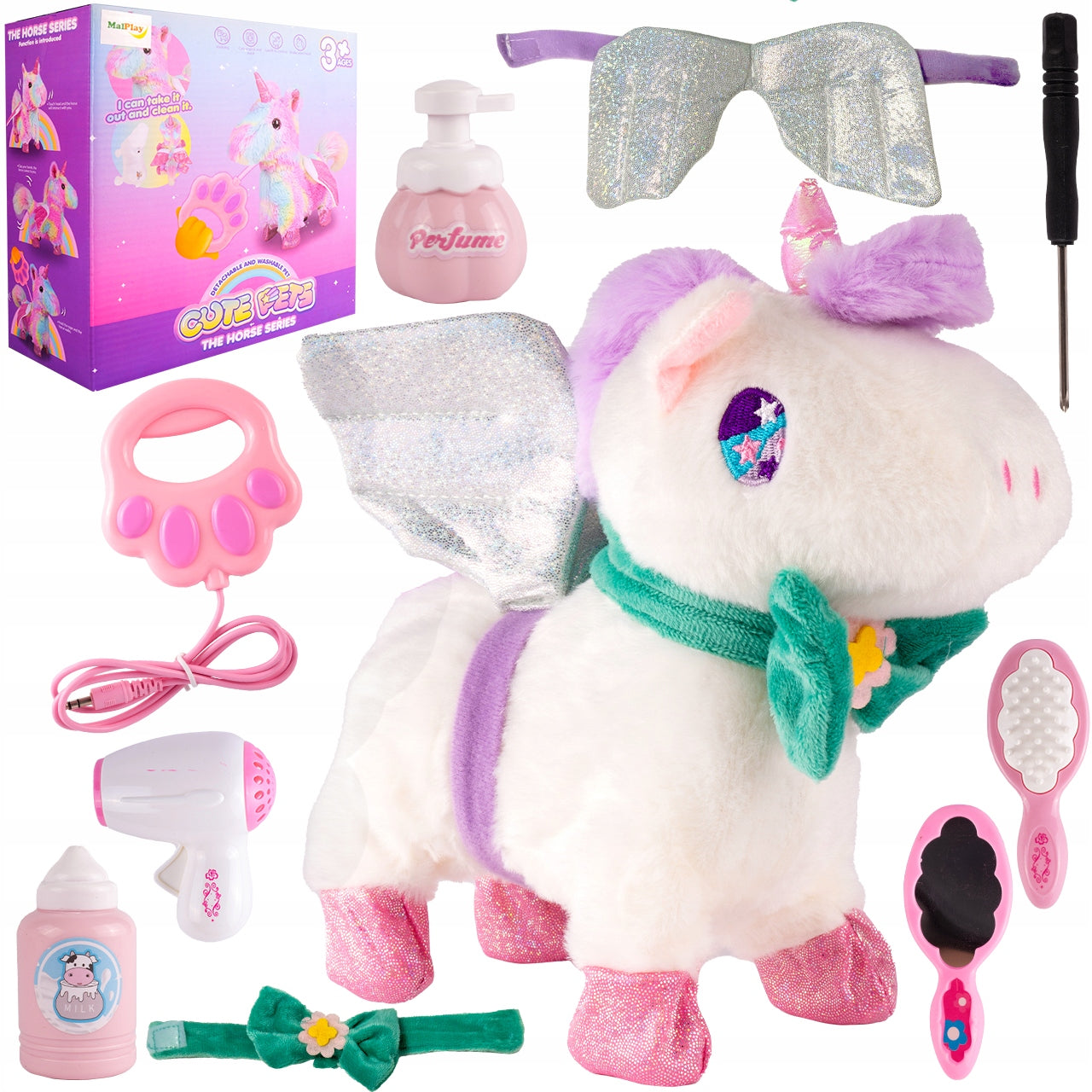Šis vienaragis ne tik vaikšto ir loja, bet ir siūlo daugybę būdų, kaip jį prižiūrėti ir stilizuoti, suteikiant vaikams galimybę jaustis tikrais augintinių savininkais. Komplekte rasite viską, ko reikia – nuo šukų su veidrodėliu, kad vienaragis visada atrodytų pasitempęs, iki kvepalų buteliuko, kad jis visuomet kvepėtų nuostabiai. Žaliąją apykaklę ir nuostabius sparnus galima nuimti, leidžiant vaikui patiems kurti unikalias vienaragio išvaizdas. Tai suteikia ne tik pramogą, bet ir lavina vaiko kūrybiškumą bei estetikos pojūtį, formuodamas rūpestingumą ir atsakomybę.
