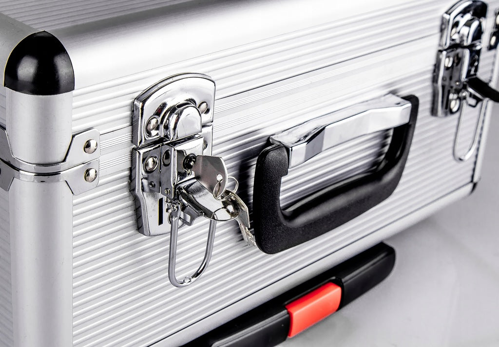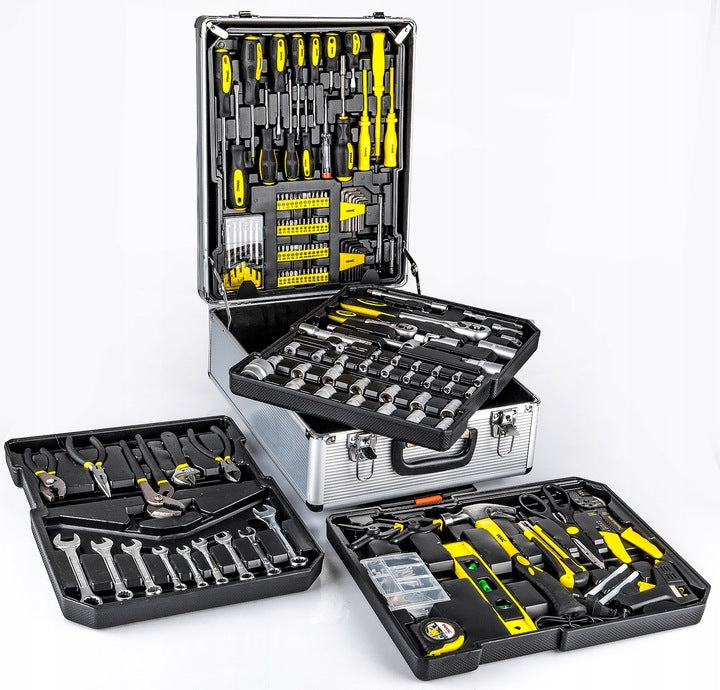 Lagaminas su teleskopine rankena, ant ratukų, rakinamas raktu. Įvairių įrankių rinkinys 186 vnt. (Terkšlės, antgaliai, plaktukas, veržliarakčiai, atsuktuvai, replės, gnybtai ir daug visko.