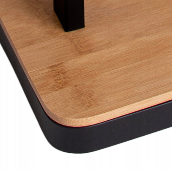 - Stilingas dizainas: Moderni juoda matinė spalva su natūralaus bambuko akcentais, tinkanti daugumai vonios kambarių.