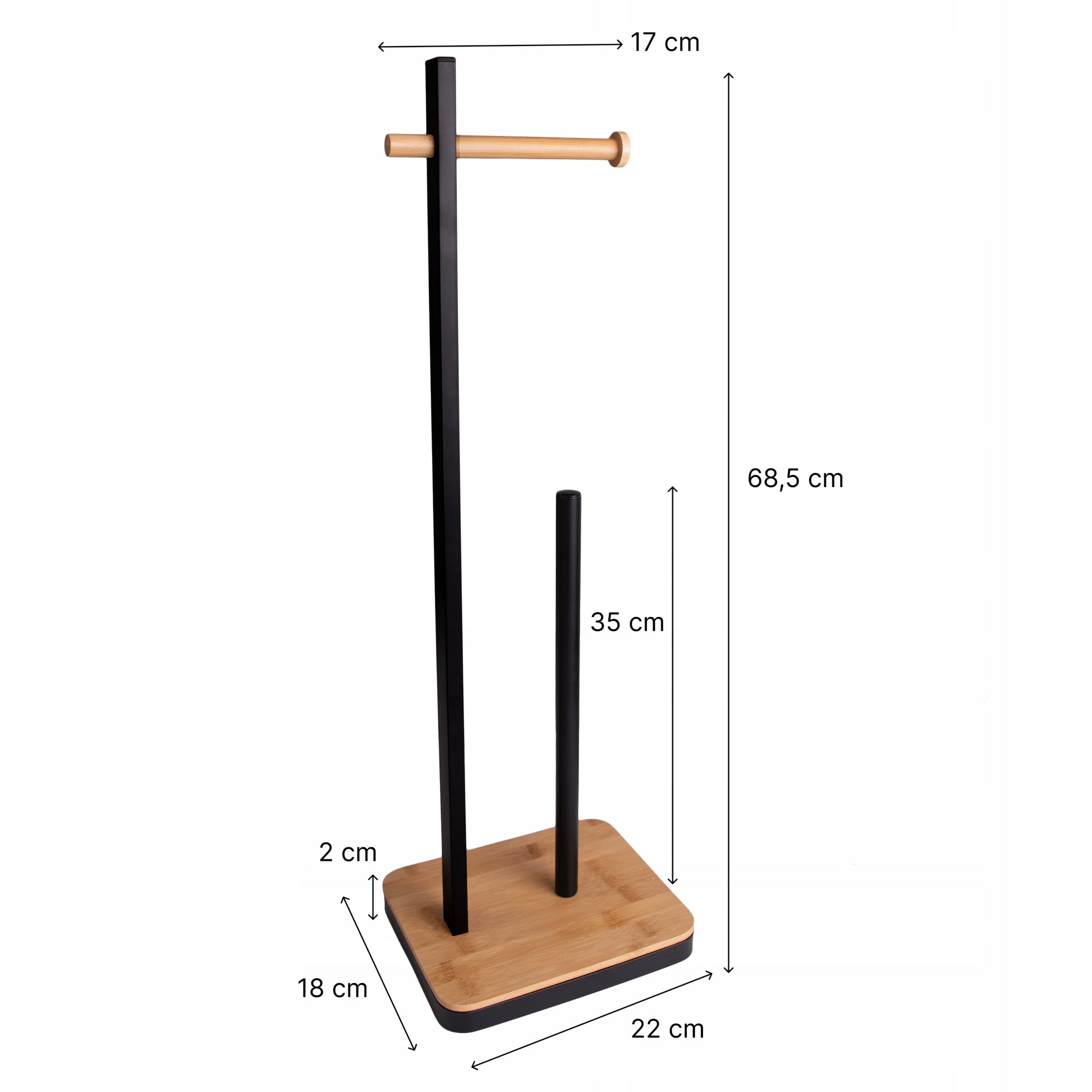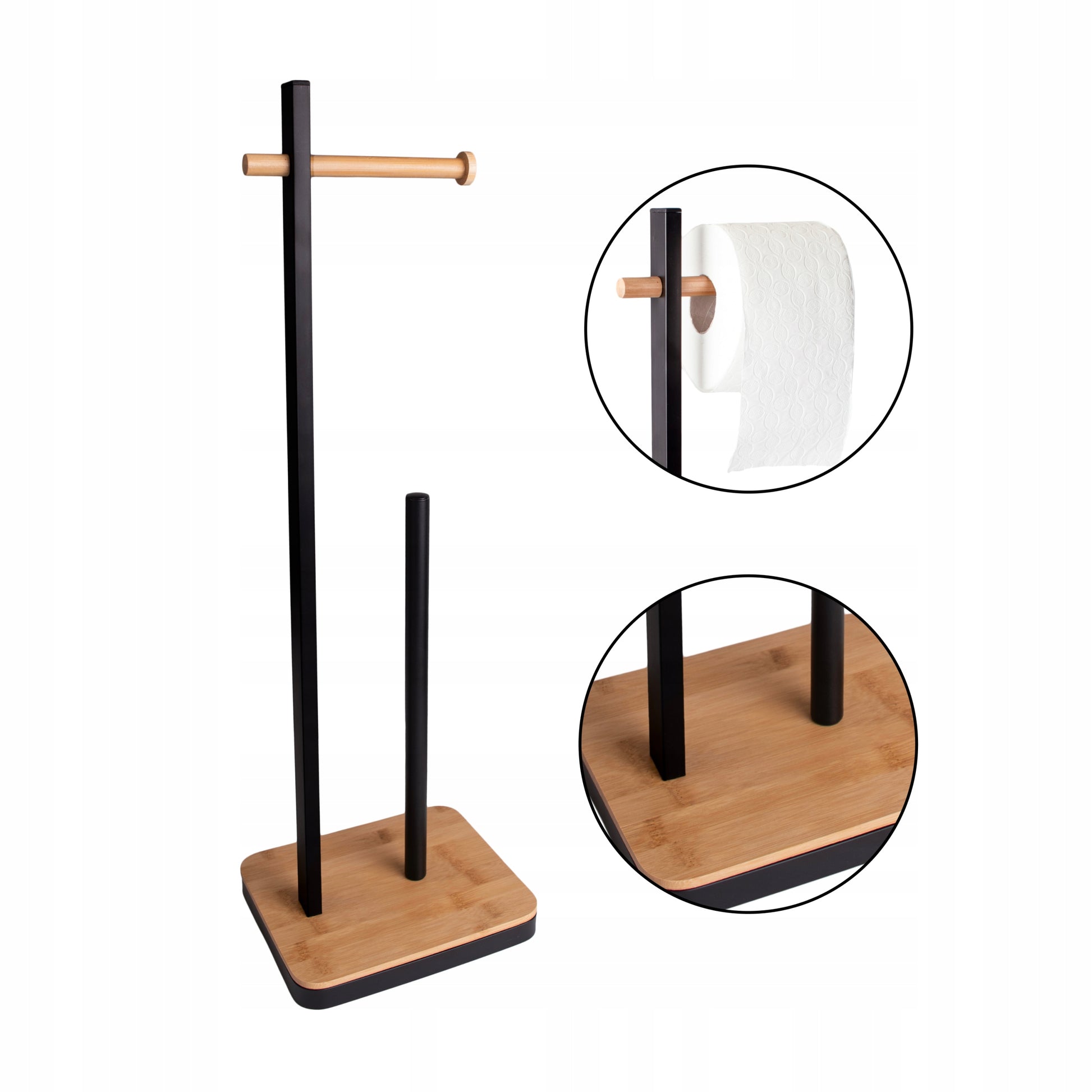 - 1 x YOKA HOME stovas tualetinio popieriaus laikiklis (juodas su bambuko detalėmis)