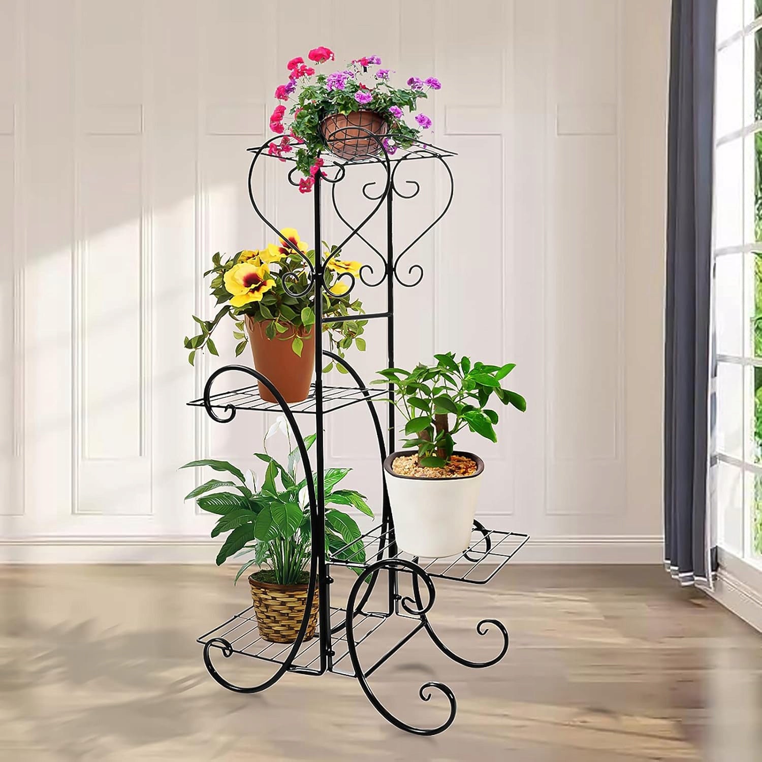 Atraskite puikų būdą eksponuoti savo mėgstamas gėles ir augalus su šiuo moderniu, juodos spalvos metaliniu gėlių stoveliu. Sukurtas lofto stiliaus interjerams, šis keturių lentynų stovas ne tik suteikia praktišką sprendimą augalų išdėstymui, bet ir tampa išskirtiniu dekoro elementu, kuris džiugins akį. Jo tvirta konstrukcija užtikrina stabilumą ir ilgaamžiškumą, leisdama jums sukurti unikalias augalų kompozicijas.
