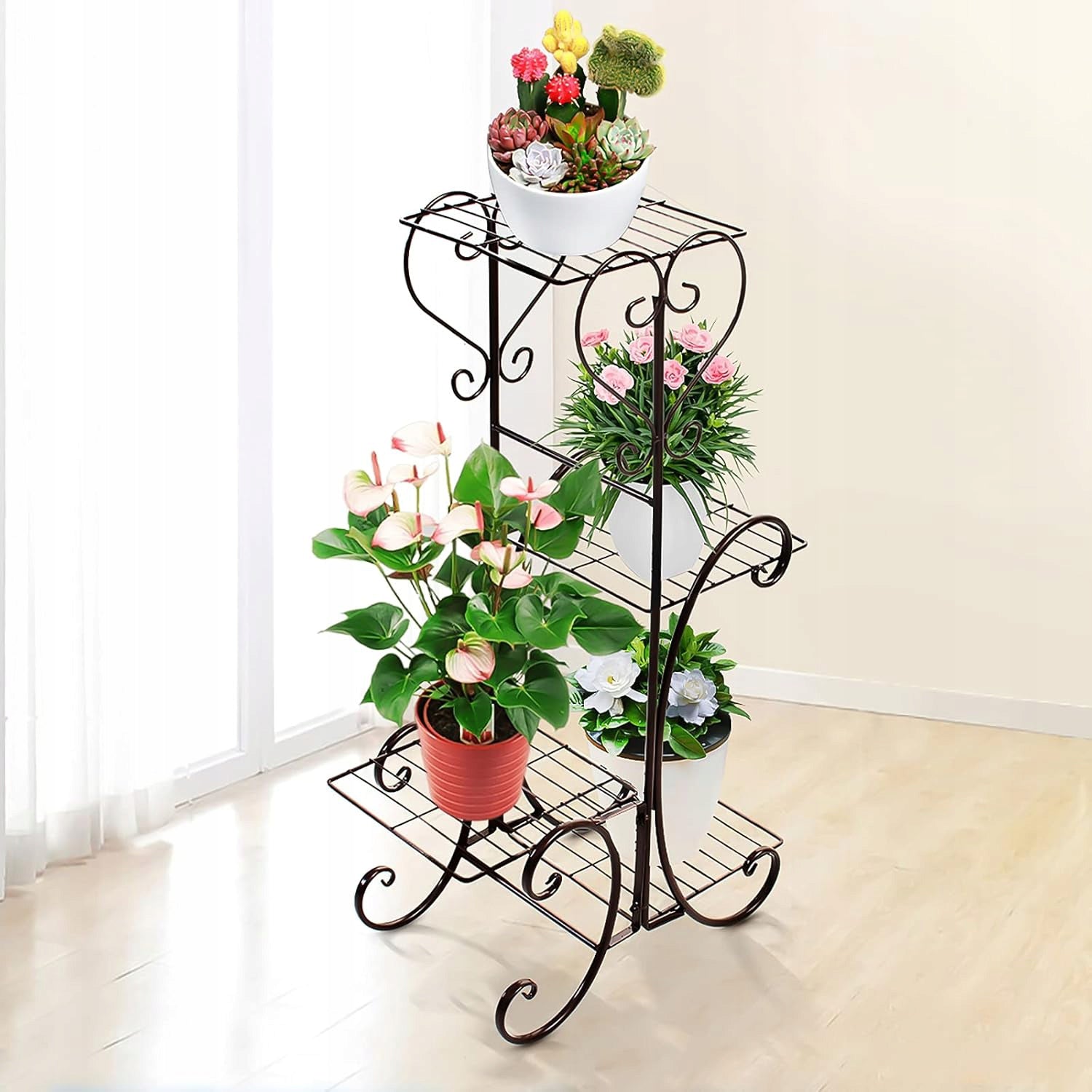 - 1 x Metalinis gėlių stovas (4 lentynos)