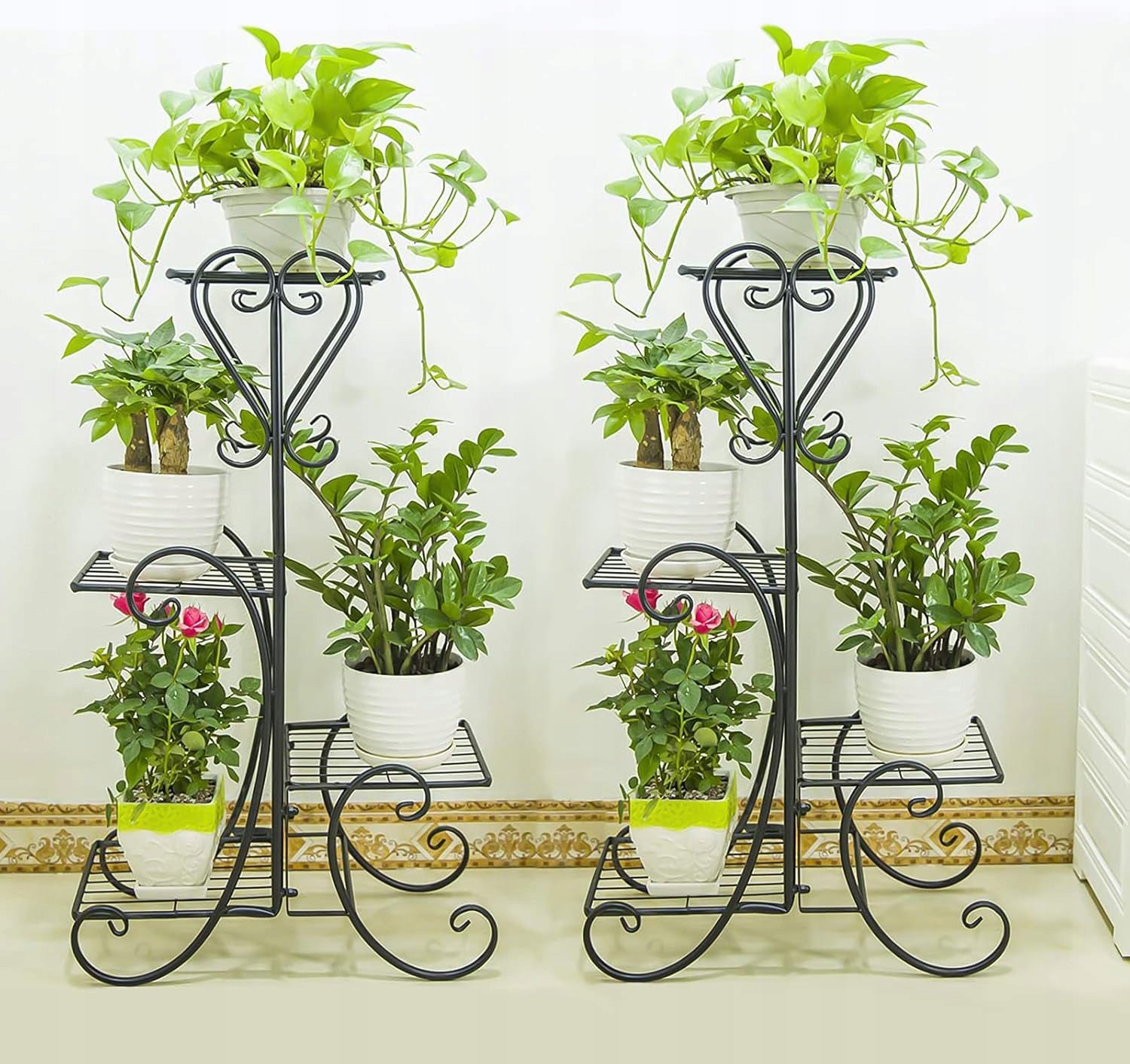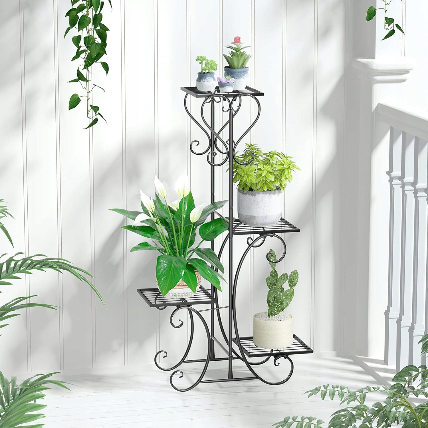 Šis stovas yra daugiau nei tik paprastas augalų laikiklis. Tai multifunkcinis elementas, tinkamas ne tik gėlėms, bet ir nuotraukoms, suvenyrams ar kitiems dekoratyviniams daiktams eksponuoti. Jo vertikali struktūra padeda efektyviai išnaudoti erdvę ir sukurti dinamišką, vizualiai patrauklią kompoziciją tiek viduje, tiek lauke. Stovas lengvai surenkamas, nereikalaujant specialių įgūdžių ar papildomų įrankių.