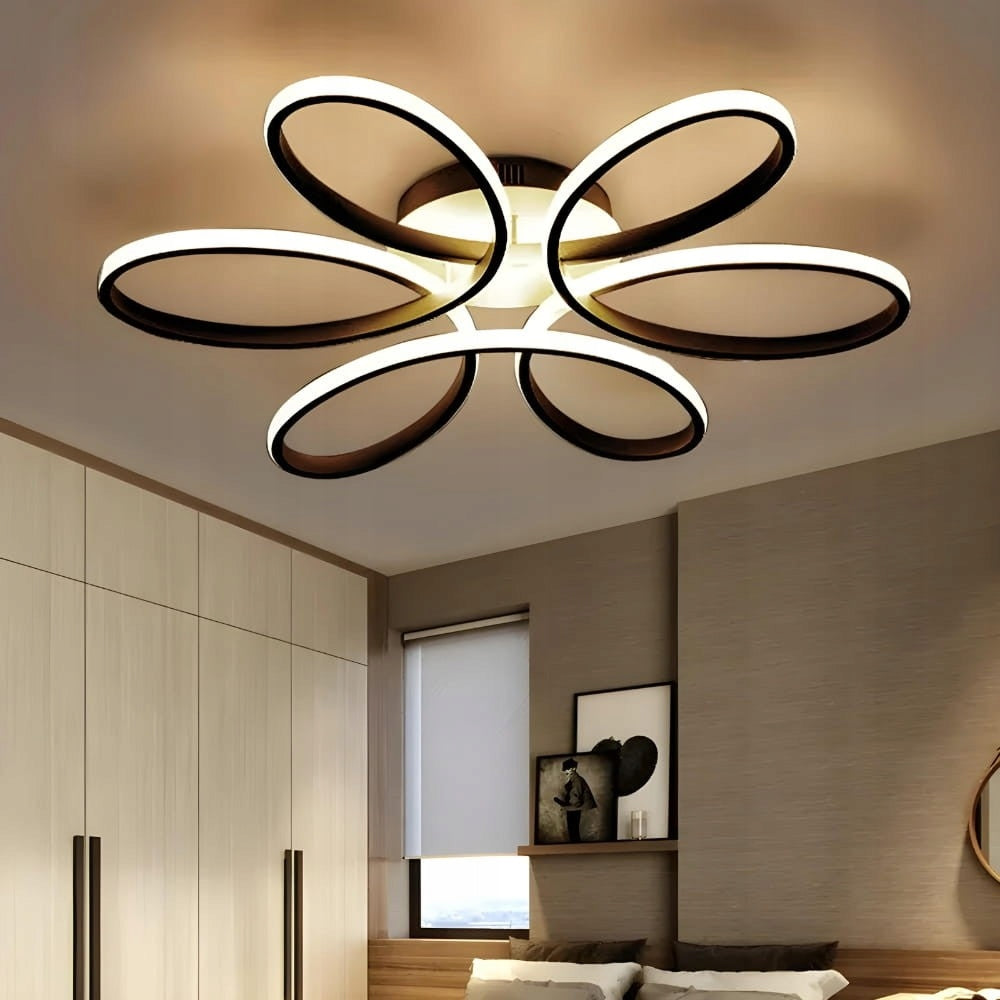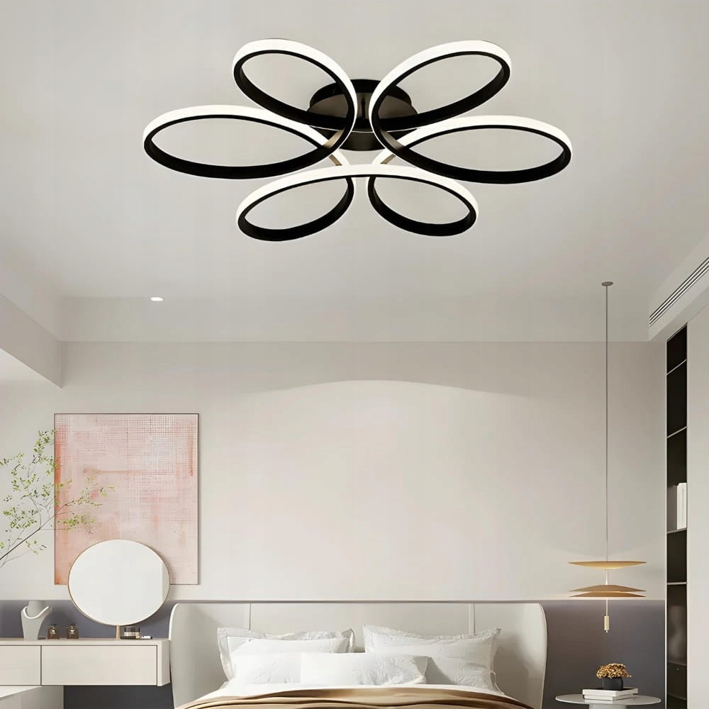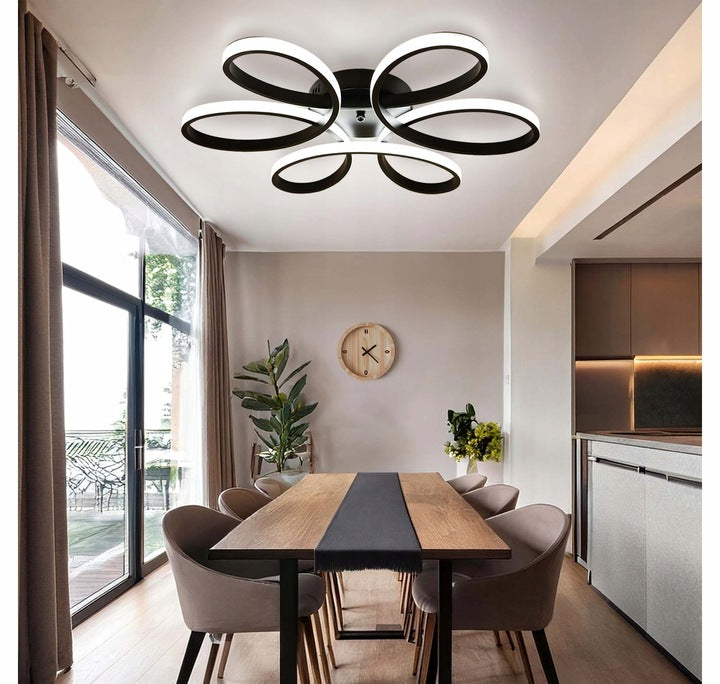 Juodas modernus lubinis pakabinamas šviestuvas / plafonas, LED liustra su pulteliu Gėlė
