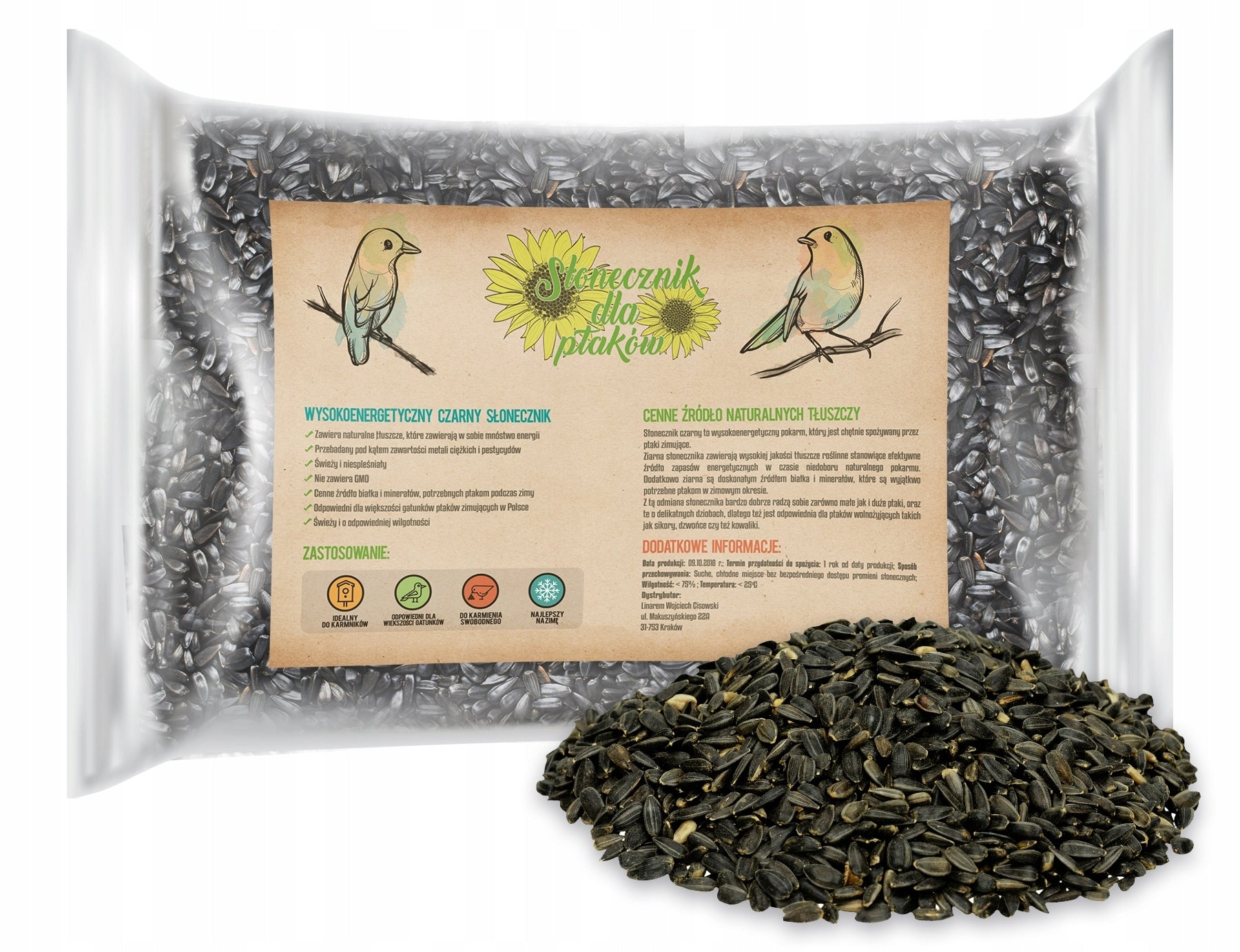 Aukštos energetinės vertės juodieji saulėgrąžų branduoliai - puikus maistas žiemojantiems paukščiams (1 kg)