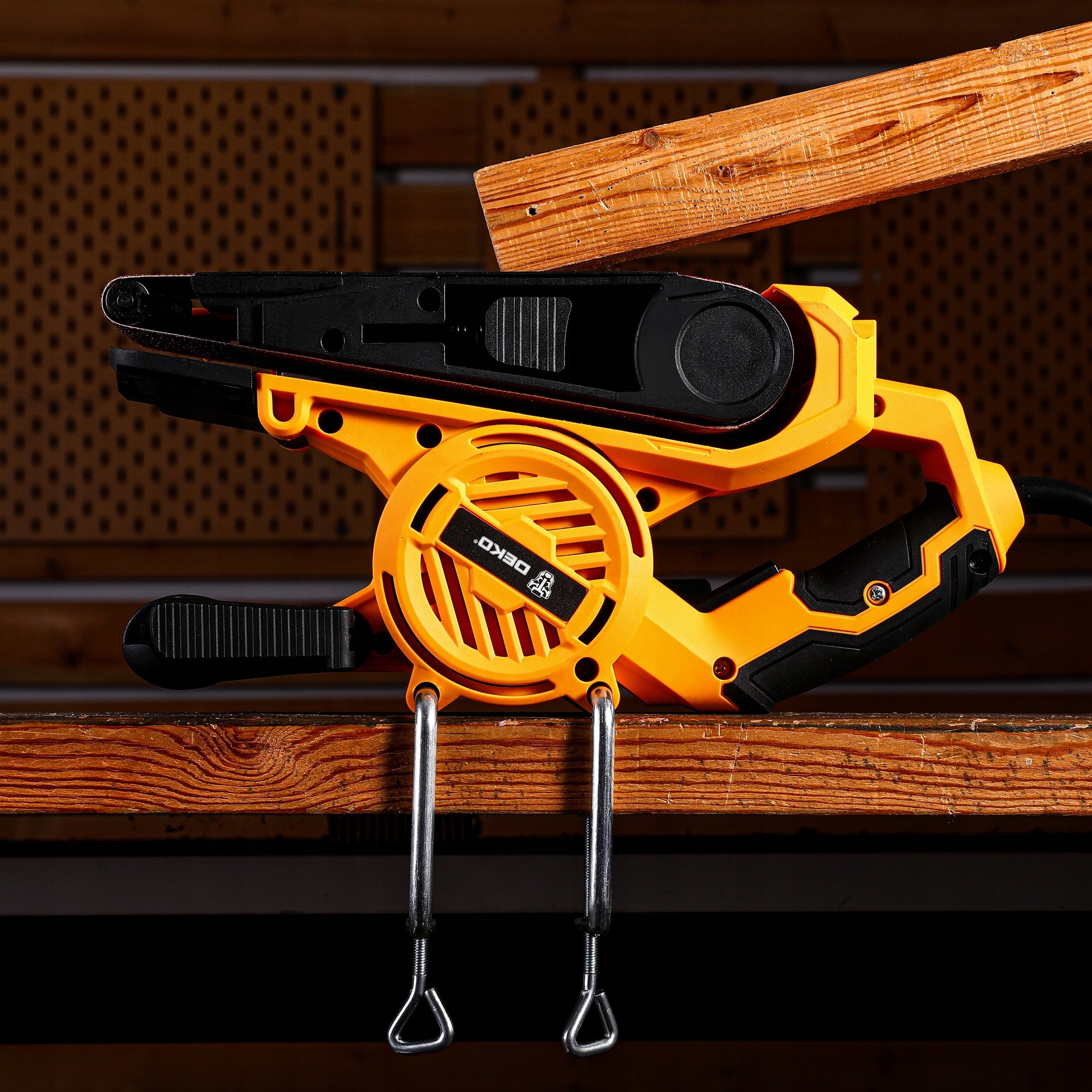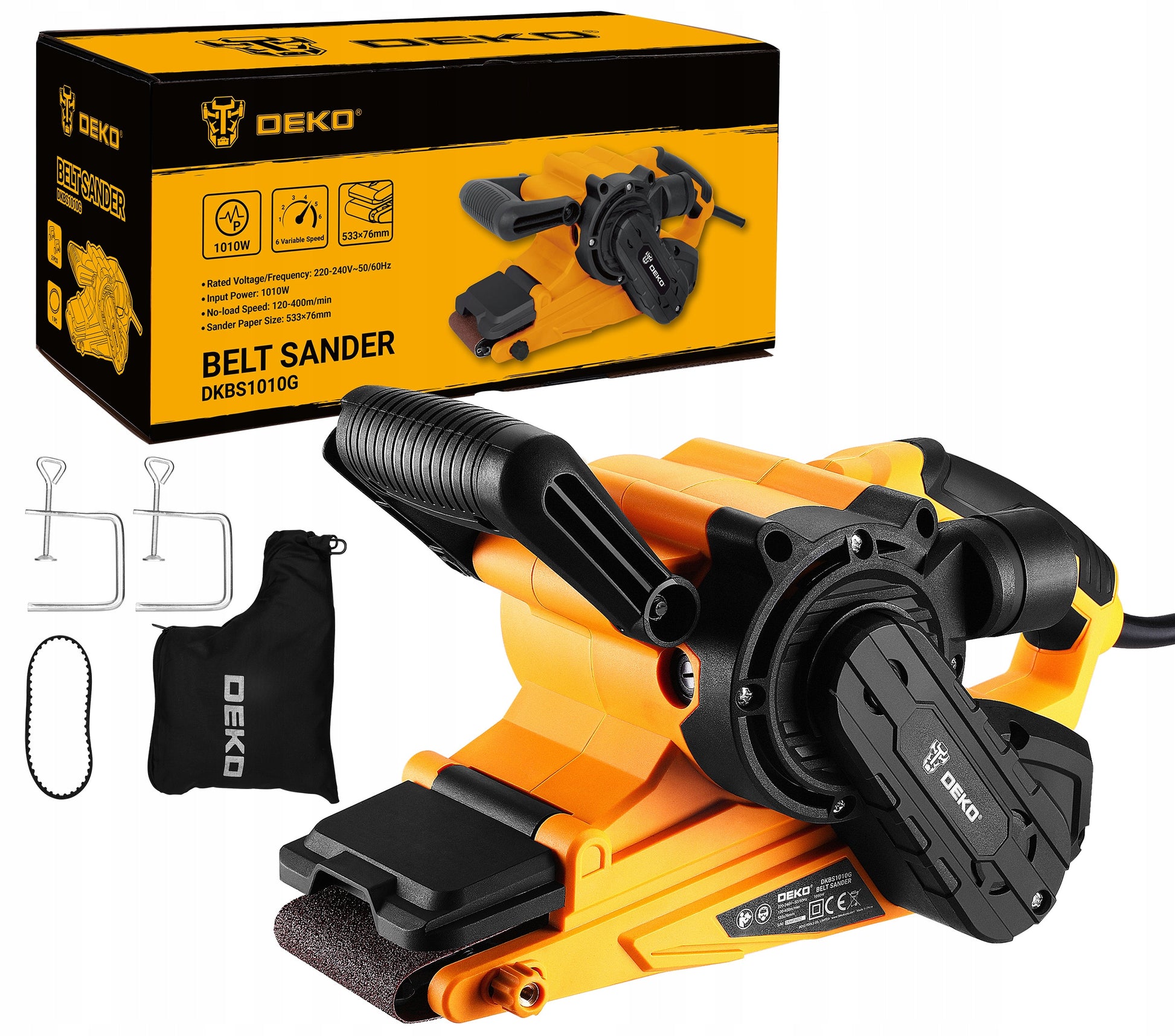 Įrenginys turi ergonomišką, guminę rankeną, patogų priekinį laikiklį, o didelė 533 x 76 mm šlifavimo juosta užtikrina didelį darbo našumą. DEKO DKBS1010G konstrukcija sukurta taip, kad net ilgalaikis darbas būtų patogus ir saugus.