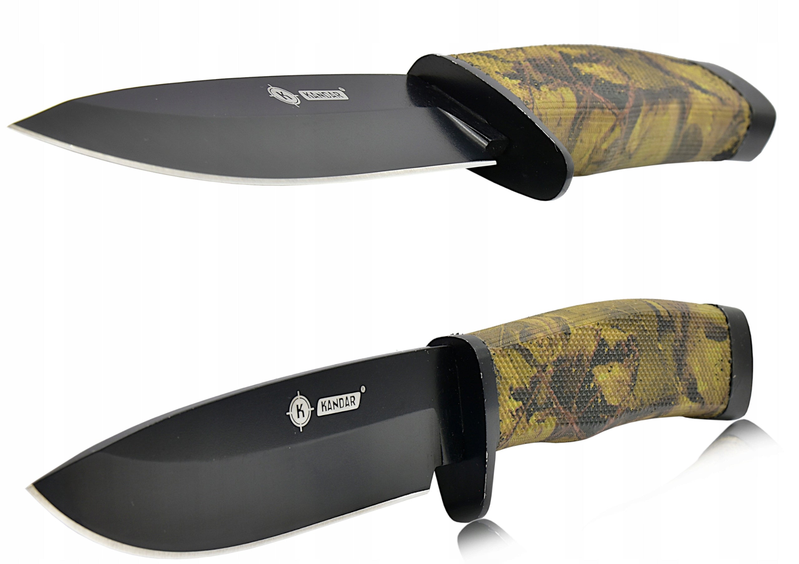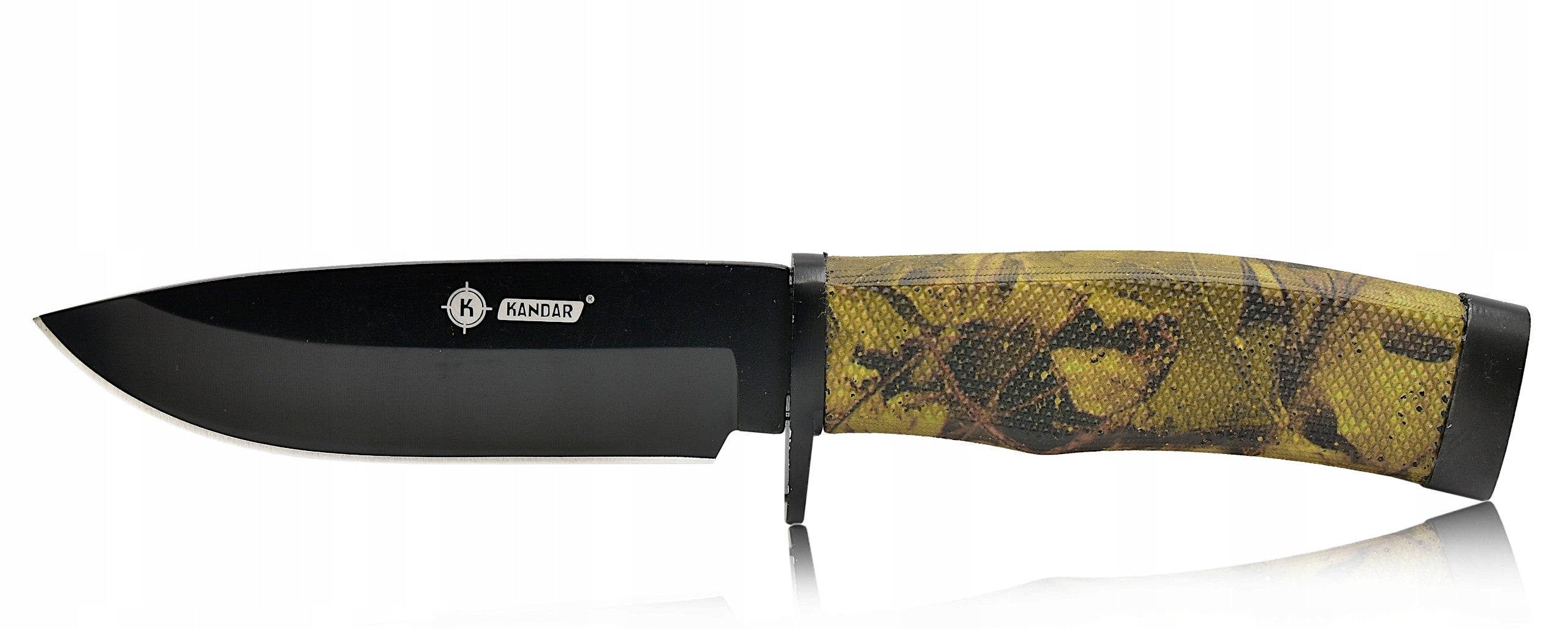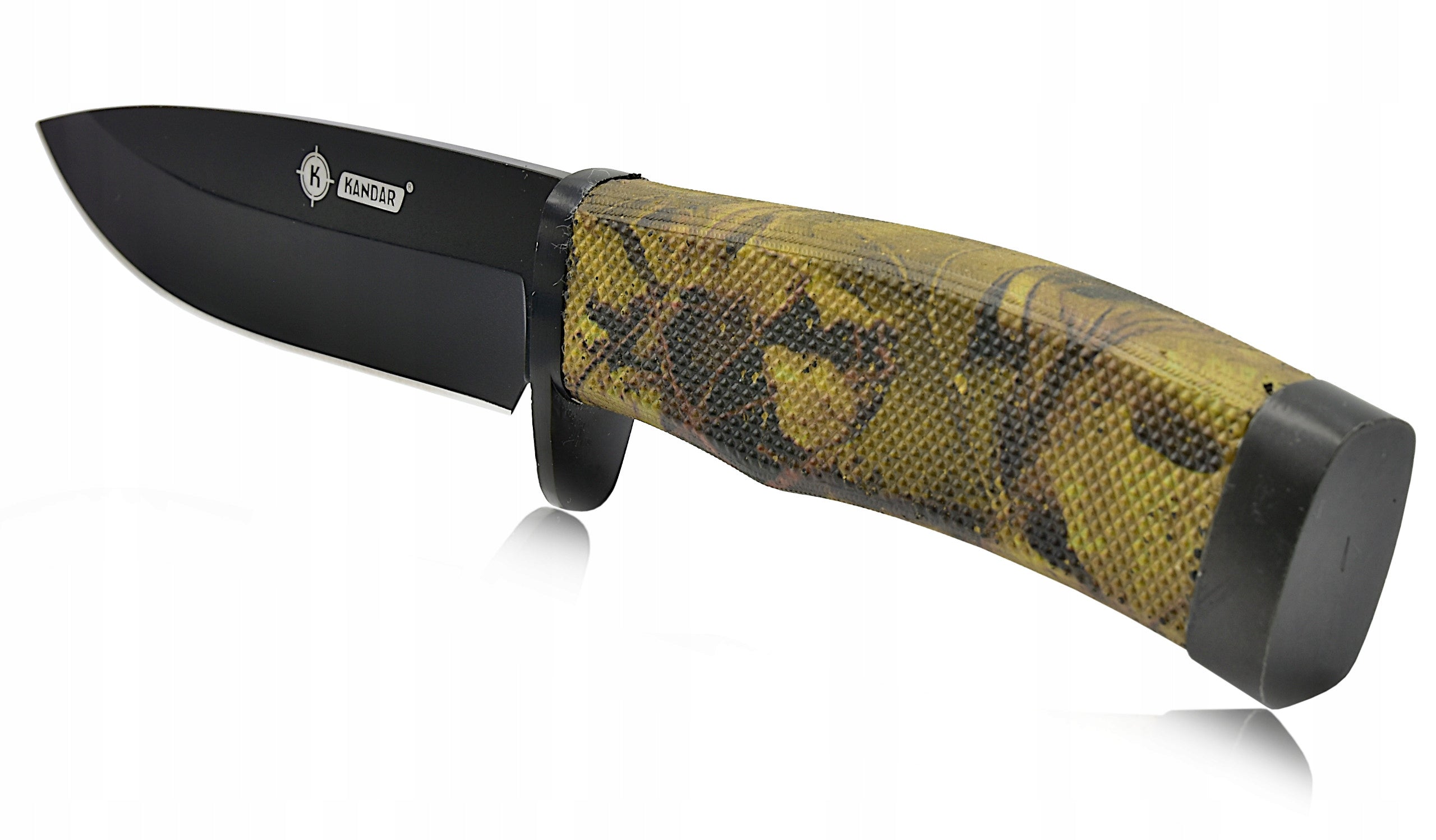 KANDAR N-394 pasižymi tvirta, fiksuota ašmenų konstrukcija (hidden tang), kuri garantuoja maksimalų patvarumą ir ilgaamžiškumą net ir intensyviai naudojant. Ašmenys, pagaminti iš aukštos kokybės plieno, turi klasikinį „drop point“ profilį, kuris užtikrina puikias pjovimo savybes ir tvirtą, patikimą galiuką darbams, reikalaujantiems didesnio tikslumo. Ašmenų nugara švelniai leidžiasi link smailės, o rankena pagaminta iš specialios, neslidžios sintetinės medžiagos, užtikrinančios tvirtą ir saugų sukibimą net su šlapiomis ar prakaituotomis rankomis. Peilio geležtė papuošta subtiliu graviravimu, suteikiančiu jam išskirtinumo. Tvirta atramėlė (jelec) papildomai apsaugo ranką nuo paslydimo ant ašmenų.