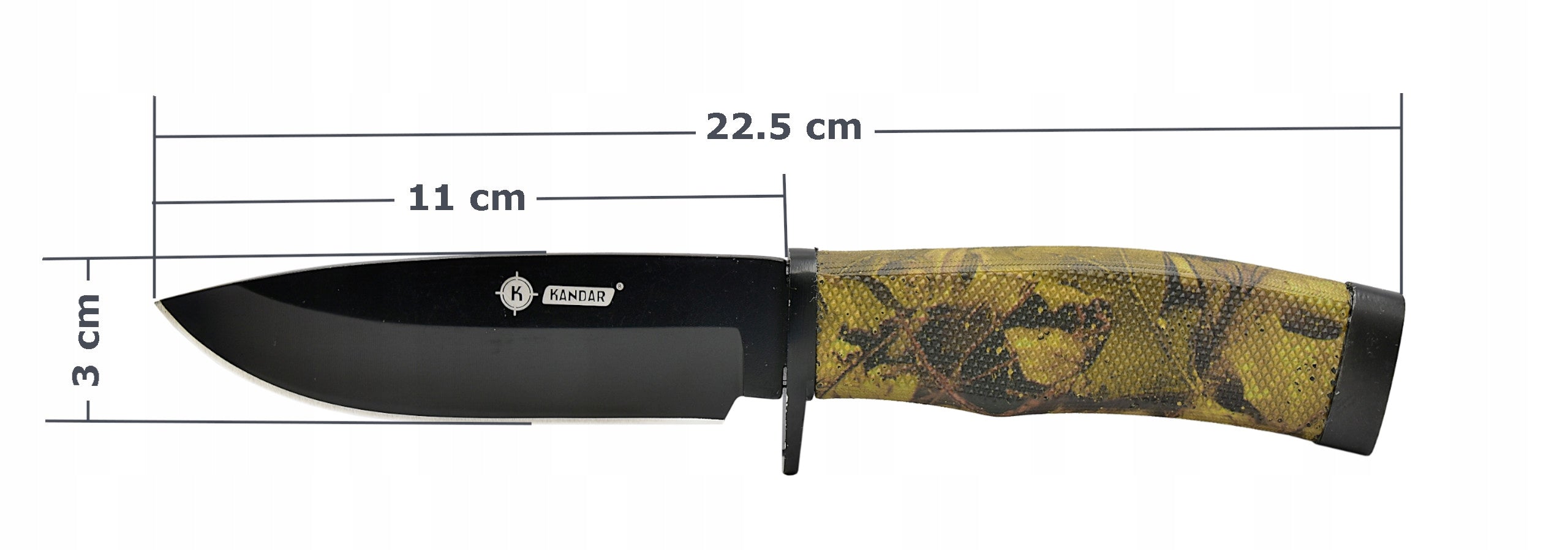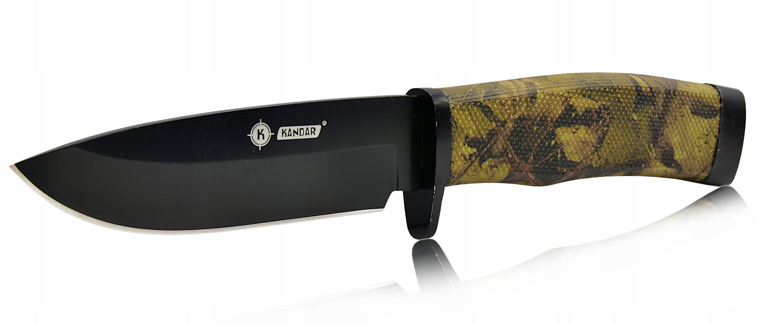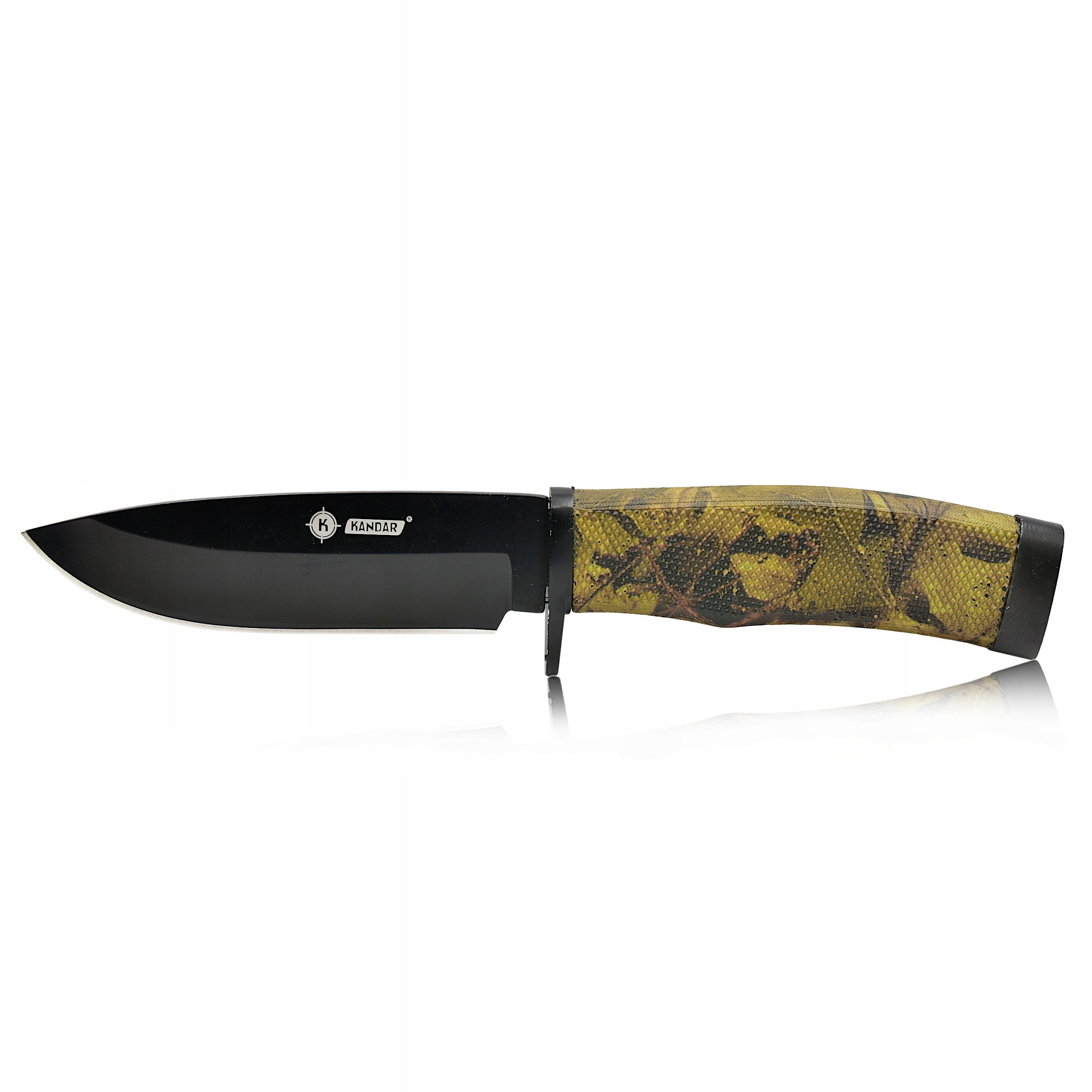 KANDAR N-394 pasižymi tvirta, fiksuota ašmenų konstrukcija (hidden tang), kuri garantuoja maksimalų patvarumą ir ilgaamžiškumą net ir intensyviai naudojant. Ašmenys, pagaminti iš aukštos kokybės plieno, turi klasikinį „drop point“ profilį, kuris užtikrina puikias pjovimo savybes ir tvirtą, patikimą galiuką darbams, reikalaujantiems didesnio tikslumo. Ašmenų nugara švelniai leidžiasi link smailės, o rankena pagaminta iš specialios, neslidžios sintetinės medžiagos, užtikrinančios tvirtą ir saugų sukibimą net su šlapiomis ar prakaituotomis rankomis. Peilio geležtė papuošta subtiliu graviravimu, suteikiančiu jam išskirtinumo. Tvirta atramėlė (jelec) papildomai apsaugo ranką nuo paslydimo ant ašmenų.