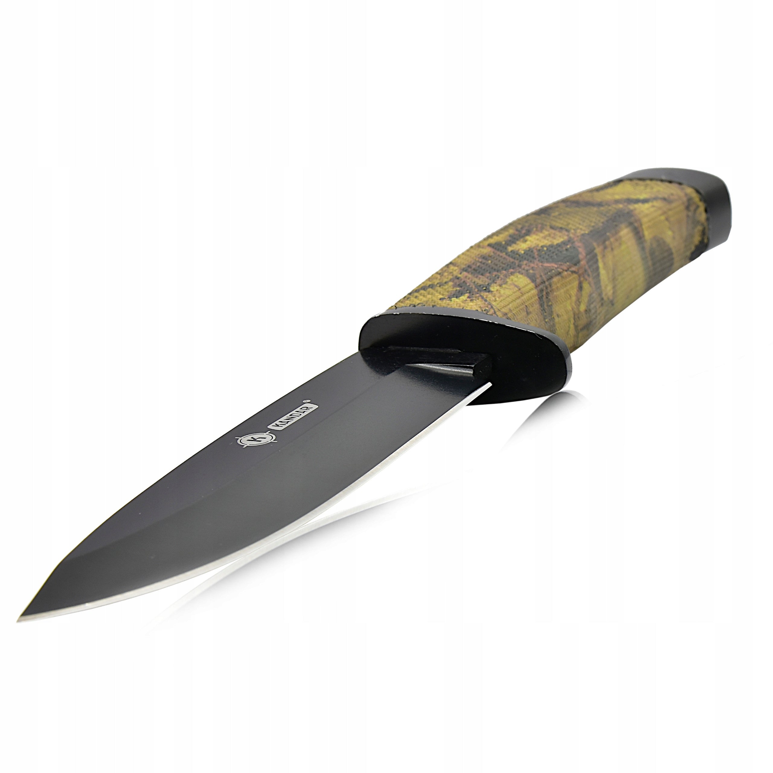 - Funkcionalumas: „Drop point“ ašmenys puikiai tinka tiek medžioklei, tiek stovyklavimo darbams ar kasdieniam naudojimui.